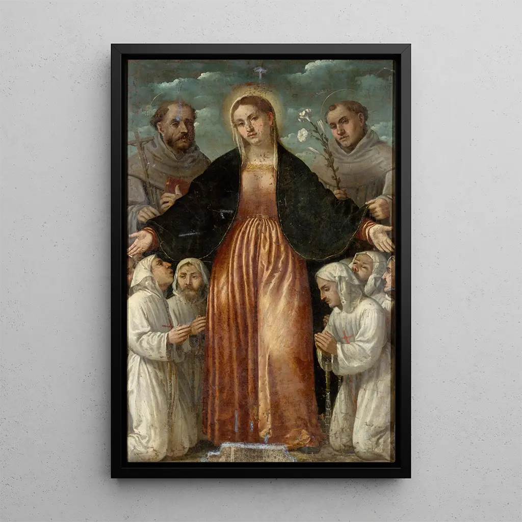 The reproduction of La Vierge de Miséricorde is a decorative piece that will enrich your interior, whether in a living room, office, or bedroom. Its print quality and color fidelity pay tribute to the original artwork, while adding a touch of spirituality and beauty to your space. This art print, with its undeniable aesthetic appeal, invites reflection and serenity, making each viewing a moment of contemplation. By incorporating this canvas into your decor, you choose a work full of meaning and emotion, while adding a note of elegance to your environment.