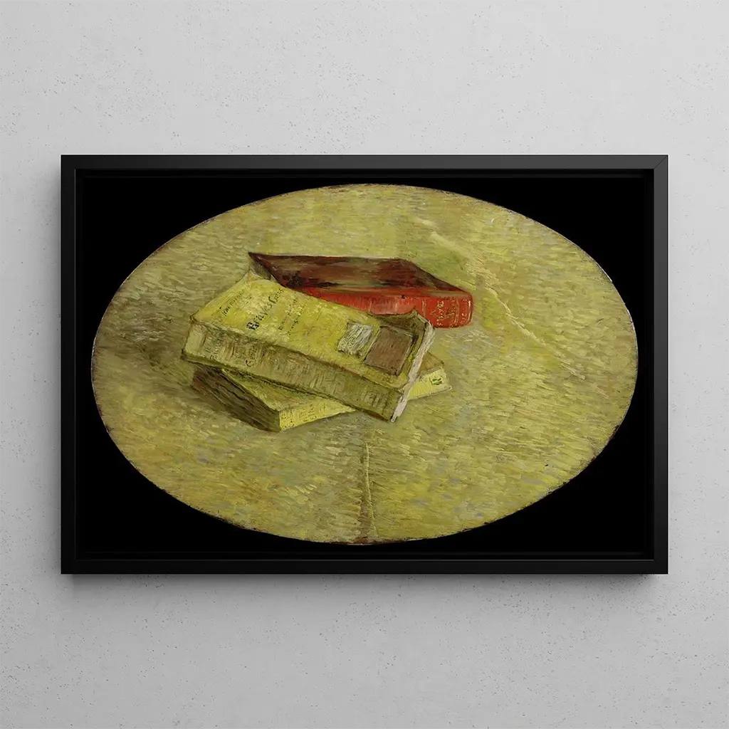 Three Books: An Ode to the Passion for Reading The art print "Three Books" by Vincent van Gogh evokes the love of books and the richness of knowledge. In this piece, the volumes are carefully arranged, their colorful covers catching the eye. The vibrant hues and dynamic brushstrokes of Van Gogh breathe a lively energy into this static arrangement. The atmosphere emanating from this canvas is both intimate and stimulating, inviting the viewer to immerse themselves in the world of words and ideas. This art print of the painting "Three Books" is a tribute to literature and the escape it offers. Vincent van Gogh: the icon of Post-Impressionism Vincent van Gogh, an emblematic figure of Post-Impressionism, left a lasting mark on art history with his unique style and intense vision. Active in the late 19th century, he transformed ordinary subjects into extraordinary works of art through his bold colors and innovative painting techniques. Influenced by the Impressionists and Neo-Impressionists, Van Gogh also explored themes such as solitude and the search for meaning. The art print of "Three Books" reflects his love for culture and his desire to share this passion with the world. A decorative acquisition with multiple benefits This art print of the painting "Three Books" is a perfect addition to any space dedicated to reading or creativity. Whether in a library, an office, or a reading nook, this canvas will bring a touch of inspiration and color. The quality of the print ensures remarkable fidelity to the details and nuances of the original work, allowing you to fully enjoy Van Gogh's aesthetic. By incorporating this artwork into your decor, you create an inspiring environment that celebrates the beauty of literature and the art of reading.