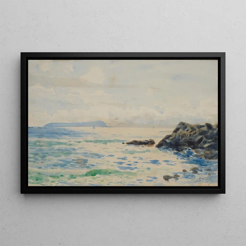 The art print of the painting "Baie de Titahi" by James Nairn immerses us in a breathtaking coastal landscape. The shades of blue and green evoke the tranquil waters of the bay, while touches of golden light illuminate the sky, creating an atmosphere of serenity and escape. Nairn's impressionist technique is expressed through bold brushstrokes, bringing life to the waves and reflections on the water. This piece invites meditative contemplation, where one can almost feel the sea breeze on their face.