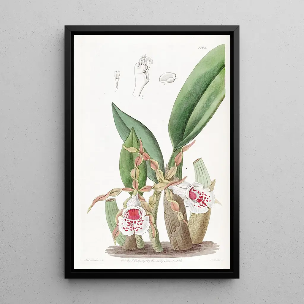 The art print of the Trichopilia with twisted petals evokes unparalleled delicacy, where each petal seems to curl in a hypnotic dance. The shades of violet and white blend harmoniously, creating a vibrant tableau that captures light in a fascinating way. The watercolor technique, used by Sydenham Edwards, gives this piece an airy, almost ethereal lightness. The atmosphere emanating from this canvas invites contemplation, transporting the viewer to a lush garden where nature expresses itself in all its splendor.