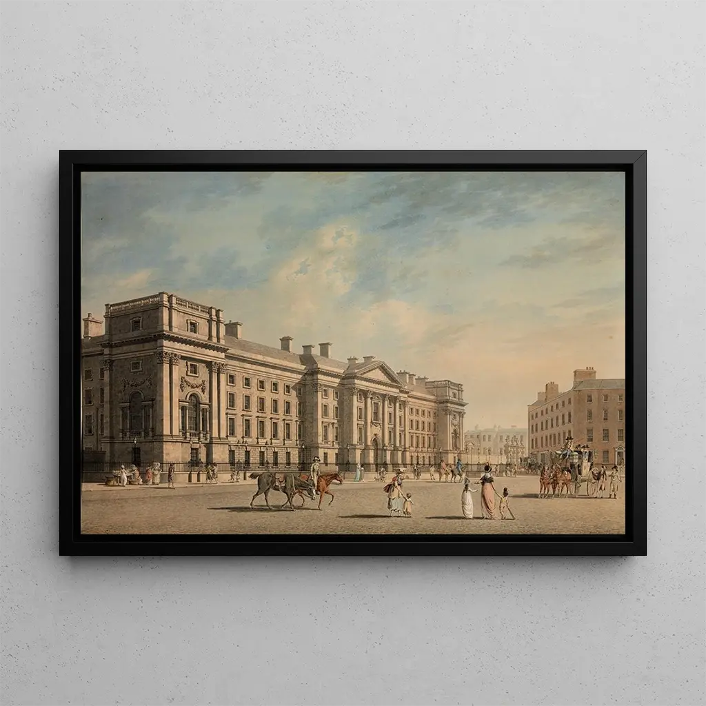 The art print of Trinity College, College Green, Dublin, offers a fascinating glimpse into one of Ireland's most prestigious institutions. This work by James Malton reveals the splendor of Georgian architecture, with its elegant lines and refined details. Light plays a crucial role in this composition, illuminating the building facades while creating shadows that add depth to the scene. Malton's technique, blending watercolor and drawing, captures the very essence of this iconic place, inviting viewers to stroll through its gardens and explore its corridors rich in history.