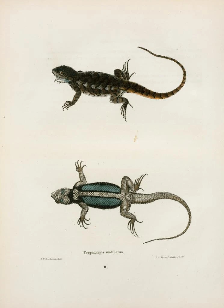 John Edwards Holbrook, naturalist and artist, made his mark in the 19th century with his botanical and zoological illustrations. His passion for nature led him to explore and document rare species, making him a pioneer in scientific illustration. Influenced by the discoveries of his time, Holbrook was able to combine scientific precision with artistic sensitivity. His works, including the Tropidolepis ondulé, demonstrate his commitment to raising awareness of the richness of biodiversity.