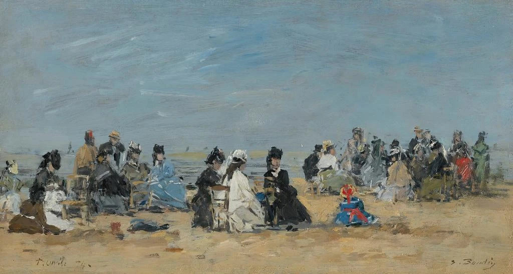 Eugène Boudin, born in 1824, is often considered one of the pioneers of Impressionism. His passion for plein air painting and his meticulous observation of light effects on the landscape led him to develop a unique style. Influenced by Norman landscapes and maritime life, Boudin was able to capture fleeting moments with great sensitivity. "Trouville, beach scene" perfectly illustrates his talent, blending realism and Impressionism, and demonstrating the importance of light in his work. His work has inspired many artists, including Claude Monet, who followed in his footsteps.