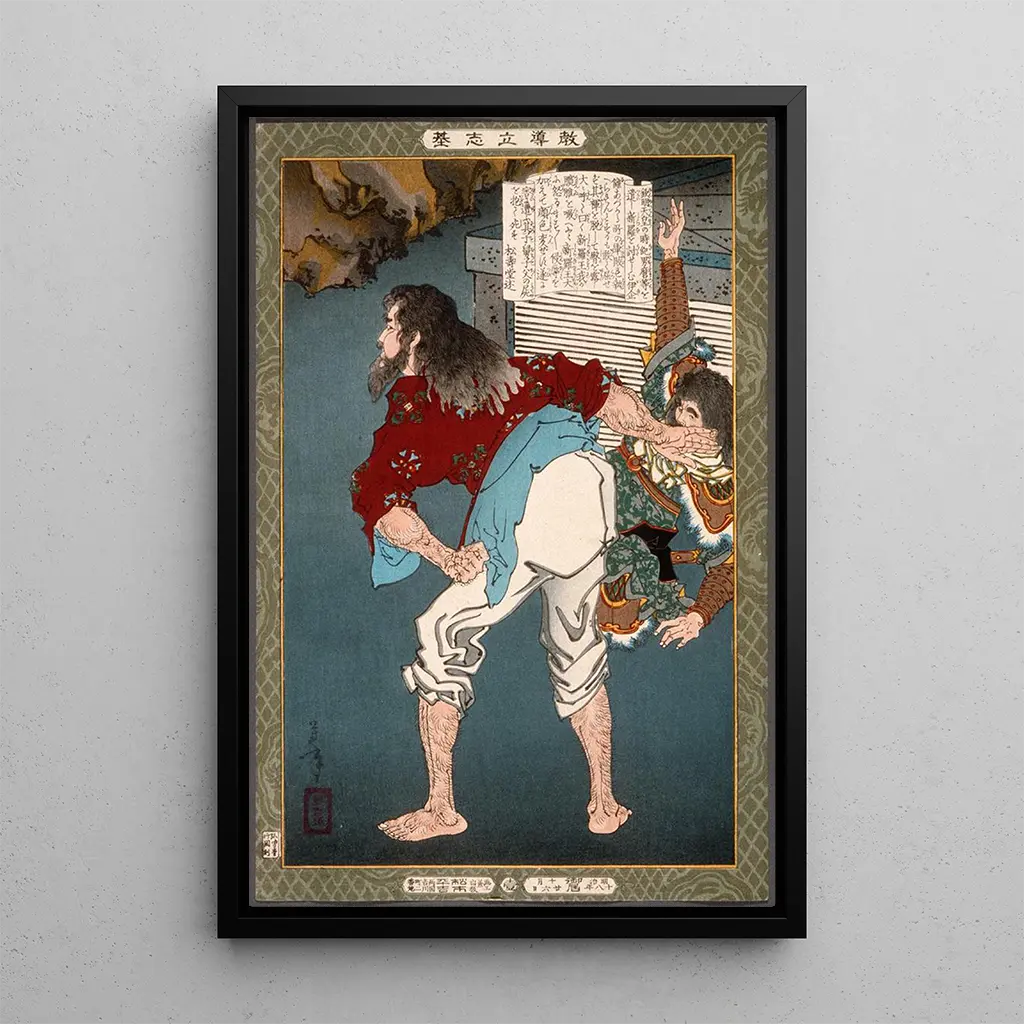 Tsukioka Yoshitoshi, born in 1839, is one of the last great masters of ukiyo-e, a Japanese art print style that reached its peak in the 17th century. Influenced by the social and political upheavals of his time, Yoshitoshi managed to blend tradition and innovation, creating works that reflect both the beauty of the natural world and human struggles. His career, marked by periods of glory and hardship, has left an indelible artistic legacy, making him a key figure in the history of Japanese art. His works, such as Tsuki no Kishi Ikina, testify to his creative genius and his ability to capture the essence of the ephemeral.