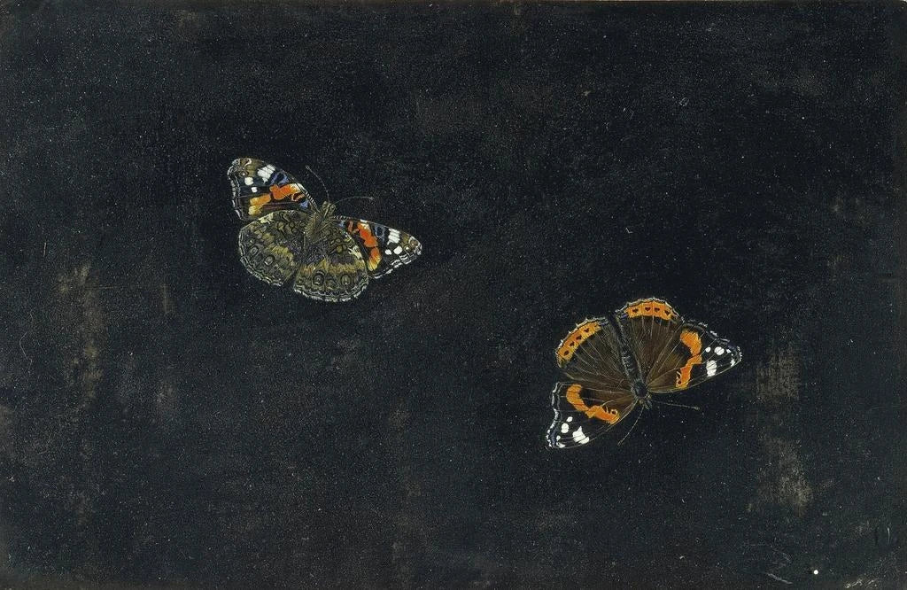 Giovanna Garzoni, active in the 17th century, is often recognized as one of the first female painters to make a name for herself in the field of still life. Influenced by the Baroque and Italian traditions, her work is distinguished by meticulous attention to detail and a refined color palette. She managed to establish herself in an art world dominated by men, and her works testify to a unique sensitivity to nature. "Two butterflies" is part of a period when the art of still life was gaining significant prominence, reflecting both the beauty of the natural world and the technical skill of the artist.