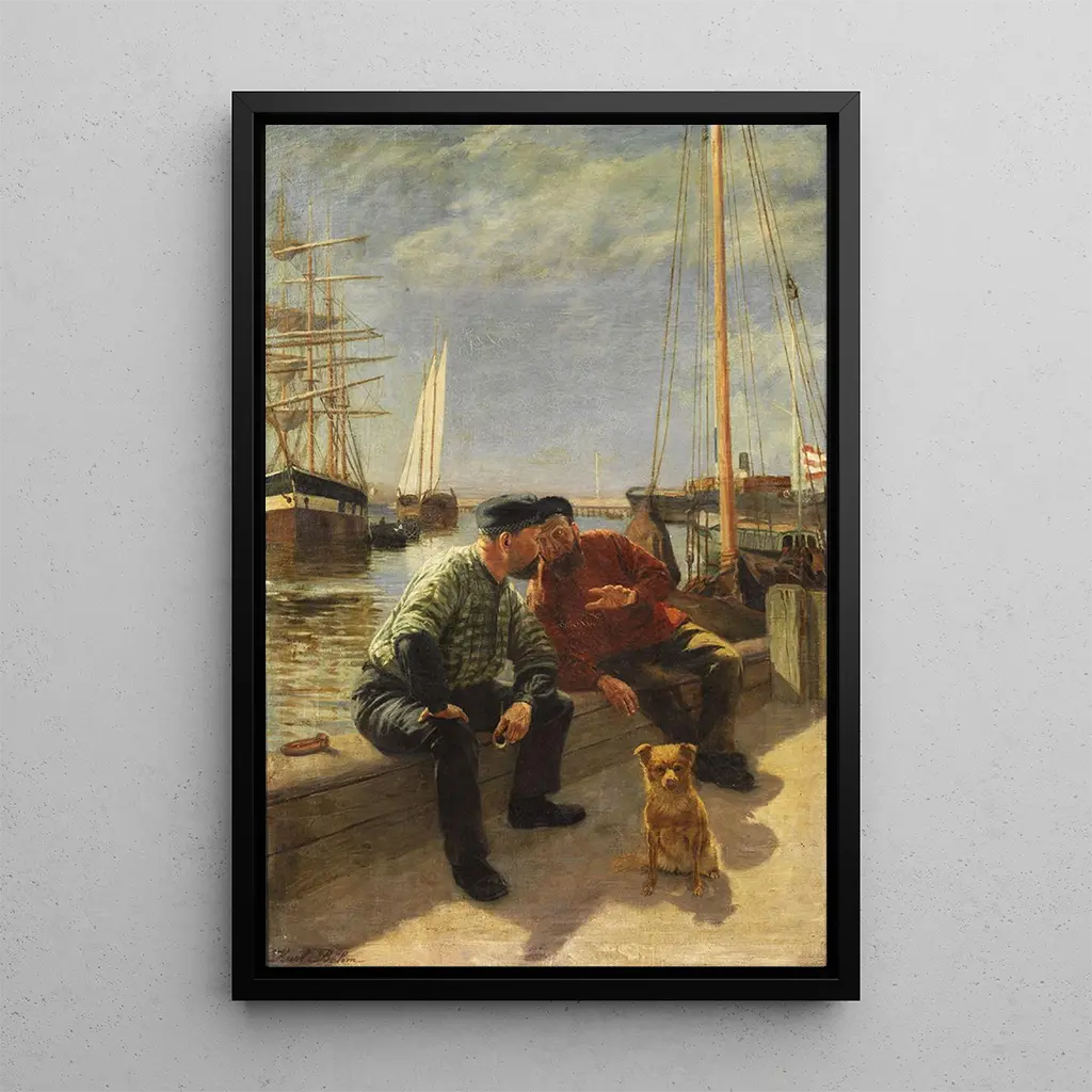Two Fishermen on the Quay: A Maritime Scene In "Two Fishermen on the Quay," Karl Behm immerses us in a maritime atmosphere filled with tranquility. The art print depicts two men, focused on their task, surrounded by shades of blue and green that evoke the sea and the surrounding nature. The light plays a crucial role, illuminating the fishermen's faces and creating delicate shadows that add depth to the composition. Behm's technique, blending realism and impressionism, brings this scene to life, making the sound of the waves and the salty air almost tangible. Karl Behm: A Witness to Maritime Life Karl Behm, an artist of the early 20th century, is often associated with representations of everyday life, particularly in maritime environments. His work reflects a deep admiration for nature and the professions related to the sea. Influenced by the artistic currents of his time, Behm captured the essence of fishing scenes with a unique sensitivity. His work bears witness to an era when maritime life was at the heart of concerns, and he immortalized these moments with great finesse, establishing himself as an essential artist in this field. A decorative art print with multiple virtues The reproduction of "Two Fishermen on the Quay" is an ideal piece to bring a touch of serenity and authenticity to your interior. Whether in a living room, office, or bedroom, this art print evokes the simple beauty of maritime life and invites contemplation. Its print quality and fidelity to the original artwork guarantee an enriching visual experience. By integrating this piece into your decor, you create a space that breathes tranquility and harmony, while celebrating the work and passion of fishermen.