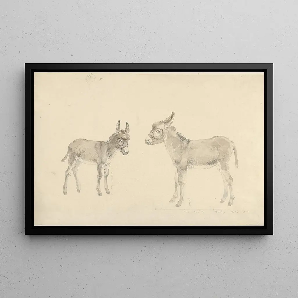 The art print of Two Donkeys is a decorative piece that will find its place in various living spaces, whether in a living room, office, or bedroom. Its print quality guarantees fidelity to the details of the original work, while offering undeniable aesthetic appeal. This painting brings a touch of serenity and nature to your interior, creating a warm and welcoming atmosphere. By choosing this canvas, you opt for a piece that not only enhances your decor but also evokes a deep connection with the beauty of the animal world.