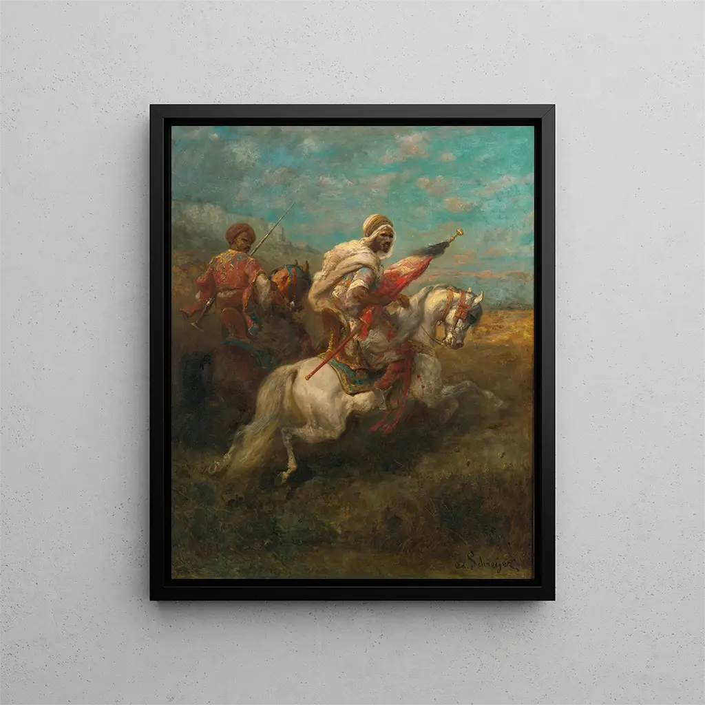 Choosing an art print of "Deux éclaireurs à cheval" by Adolf Schreyer means selecting a piece that transcends simple decoration to become a true work of art, capable of elevating the ambiance of any interior. Signed Artem Legrand, this reproduction is a tribute to refined aesthetics and Schreyer's artistic heritage. Every detail is carefully reproduced, allowing enthusiasts