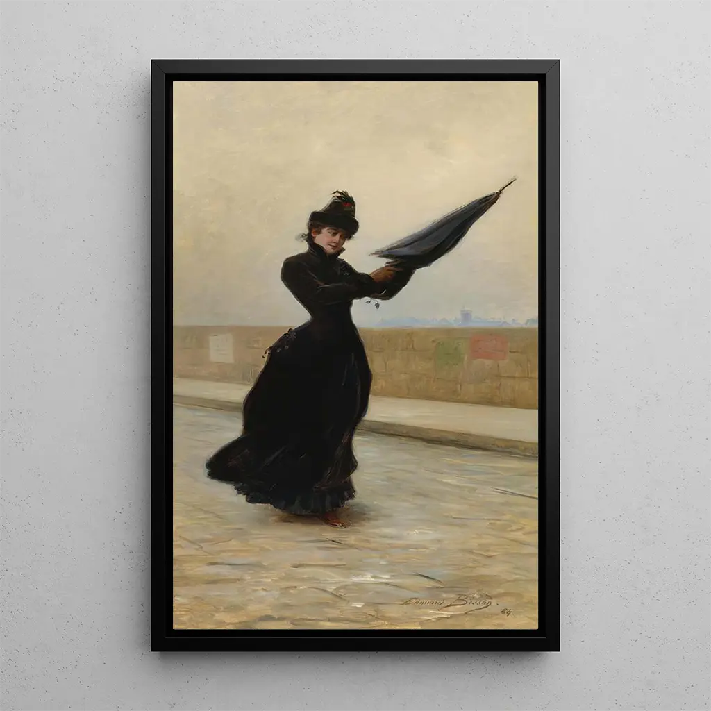 One windy day: a dance of light and movement "One windy day" by Édouard Bisson is an art print that captures the lightness and vibrancy of a lively day stirred by the wind. The pastel colors, blending shades of blue, green, and yellow, evoke a joyful and dynamic atmosphere. The figures, dressed in flowing garments, seem to move gracefully, as if the wind is carrying them in a gentle dance. The composition, balanced and harmonious, invites the viewer to feel the freshness of the air and the beauty of a fleeting moment, where nature and humanity meet in a celebration of life. Édouard Bisson: a painter of modern life Édouard Bisson, active at the end of the 19th century, is an artist who captured the spirit of his time through his works. Influenced by the Impressionist movement, he developed a style that emphasizes light and movement, characteristic of modern life. His paintings, often imbued with poetry, reflect a sensitivity to nature and human interactions. As a painter of the Belle Époque, Bisson immortalized scenes of everyday life, bearing witness to the evolution of customs and lifestyles of his era. A decorative art print with multiple assets The reproduction of "One windy day" is an ideal choice to enhance your interior, whether it is a living room, an office, or a bedroom. Its quality of reproduction ensures fidelity to the details and colors of the original artwork, bringing a touch of freshness and dynamism to your decor. With its aesthetic appeal, this canvas invites daydreaming and escapism, making each glance a moment of pleasure. Give your space a note of lightness and poetry with this work that celebrates the beauty of simple moments.