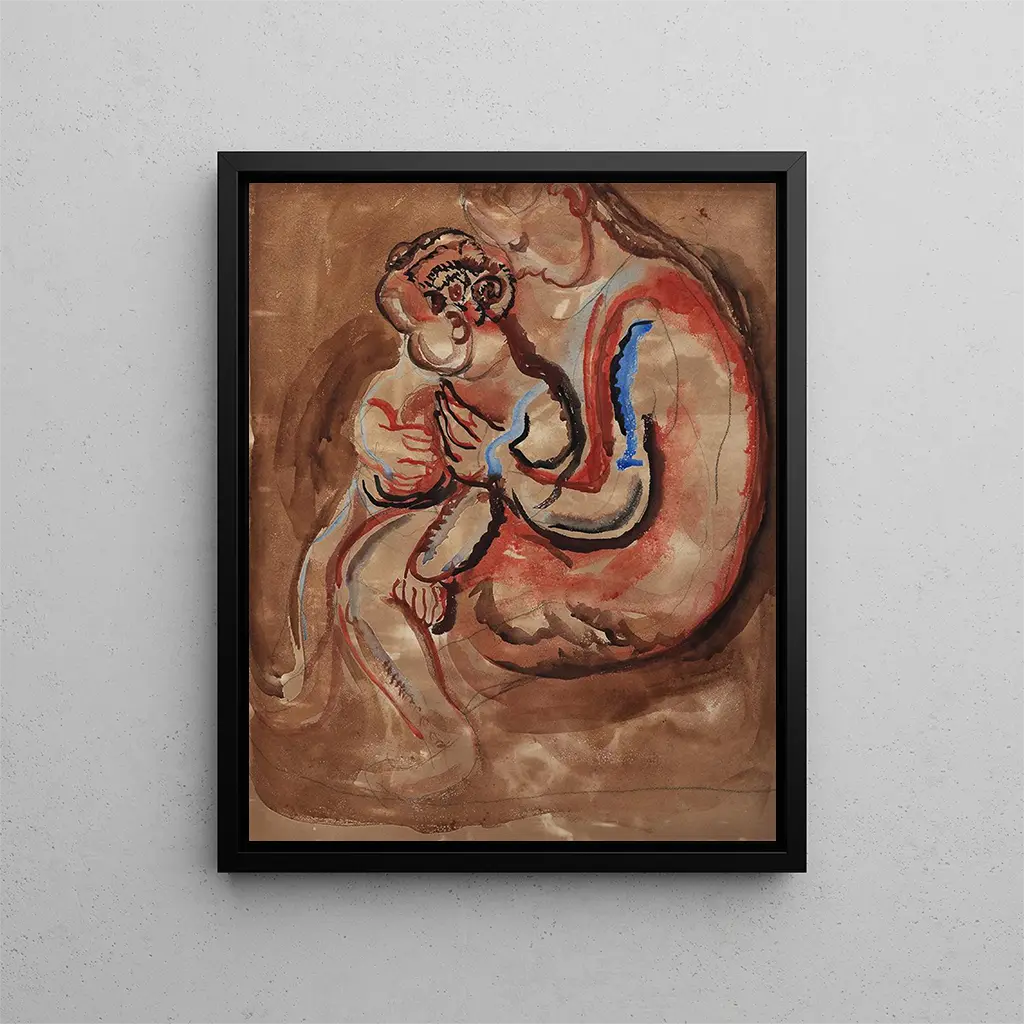 In the vast panorama of art history, some works manage to transcend eras and touch souls in an indelible way. The art print "Untitled Mother and Child" by Frances Hodgkins stands out for its poignant depiction of the relationship between a mother and her child. This piece, although lacking an explicit title, evokes universal emotions—those of tenderness and protection. Through a palette of delicate colors and stylized forms, Hodgkins invites us to delve into an intimate universe where softness and depth intertwine. The scene, both simple and meaningful, resonates with an intensity that captivates the viewer and prompts reflection on family bonds.