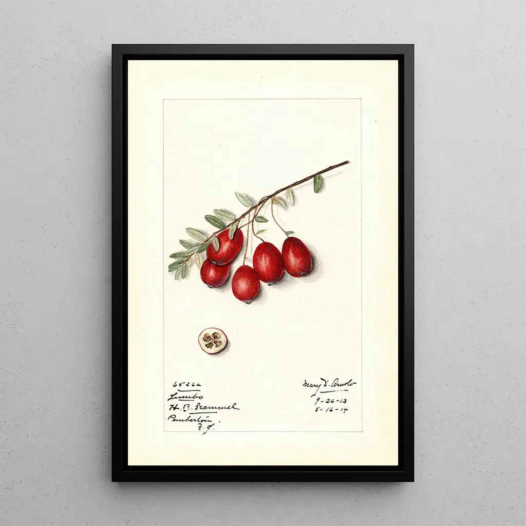 The art print of Vaccinium macrocarpon Jumbo is an ideal choice to enhance your interior, whether in a living room, office, or bedroom. Its vibrant color palette and captivating subject bring a touch of freshness and life to any space. The quality of the art print ensures remarkable fidelity to the original work, allowing you to enjoy the aesthetic appeal of this piece without compromise. By choosing this canvas, you opt for a decorative item that not only attracts the eye but also evokes an appreciation for natural beauty and refined craftsmanship.