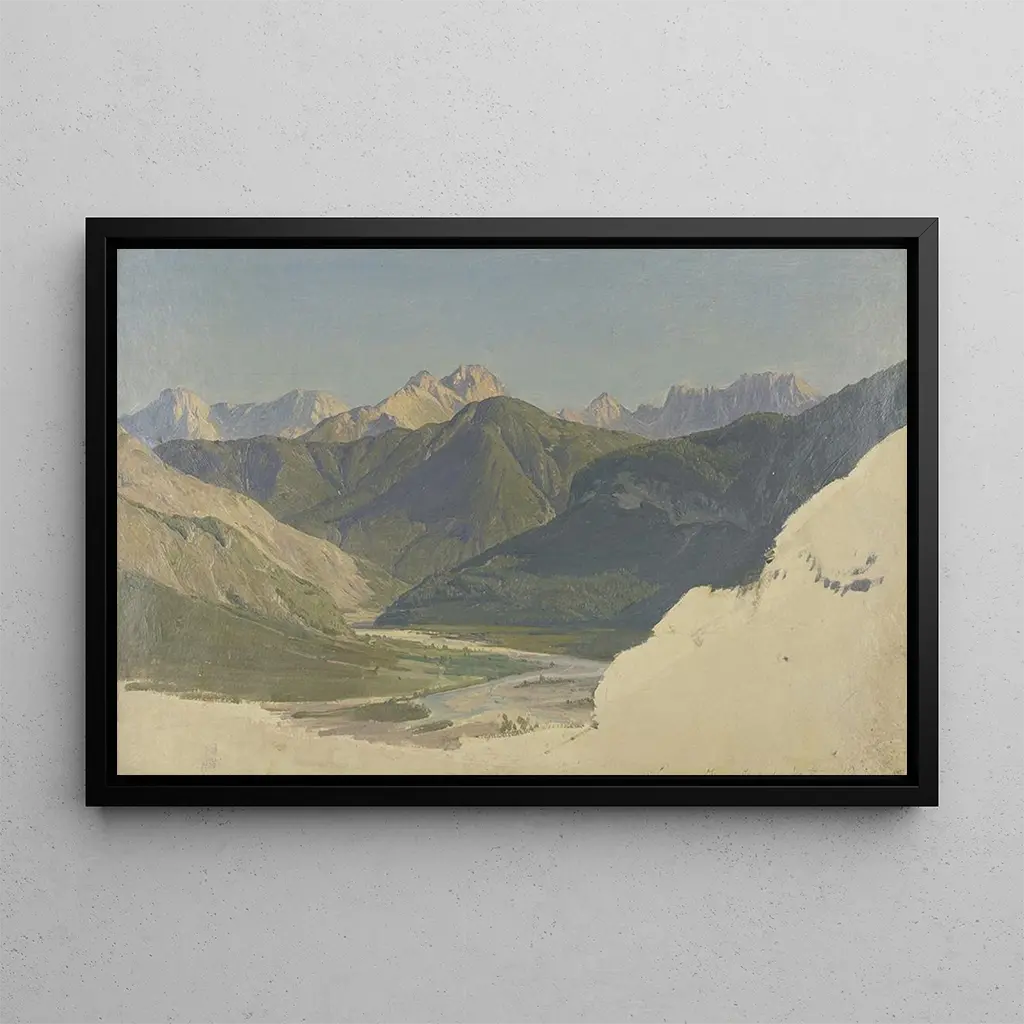Vallée de l'Isar near Mittenwald: an alpine serenity painting The art print of "Vallée de l'Isar près de Mittenwald" by Eduard Wilhelm Pose immerses us in a breathtaking alpine landscape. The majestic mountains, draped in greenery, are reflected in the crystal-clear waters of the Isar River. The soft shades of green and blue create an atmosphere of peace and tranquility, inviting contemplation. Pose's technique, characterized by meticulous details and subtle lighting, brings this idyllic scene to life, where nature seems to flourish in all its splendor. Eduard Wilhelm Pose: a Romantic landscape painter Eduard Wilhelm Pose, active in the 19th century, is renowned for his romantic landscapes that capture the beauty of alpine regions. Influenced by the Romantic movement, he conveyed the emotion and grandeur of nature through his works. His travels across Europe, notably in Germany and Switzerland, enriched his repertoire, allowing him to depict mountain scenes with a unique sensitivity. Pose established a deep connection between man and nature, making his paintings testimonies of harmony between the two. A decorative acquisition with multiple benefits Choosing the art print of "Vallée de l'Isar près de Mittenwald" is an excellent way to bring a touch of nature to your interior decor. Whether in a living room, office, or bedroom, this canvas will add a calming and inspiring ambiance. The quality of the reproduction ensures remarkable fidelity to the colors and details of the original artwork, allowing you to enjoy an authentic piece of art at home. Its aesthetic appeal and ability to evoke serenity make it an ideal choice to enrich your living space.