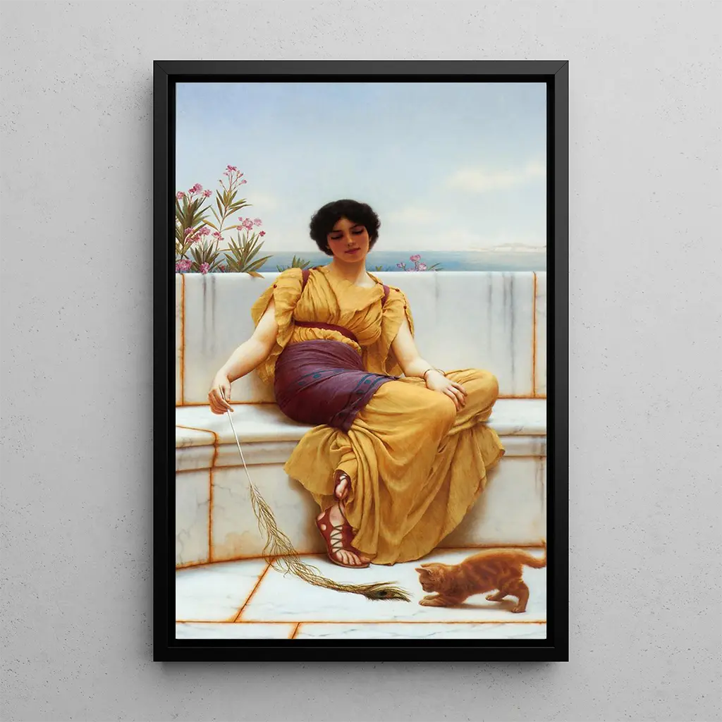 "Idleness," an iconic art print by John William Godward, captures the essence of a moment of tranquility and beauty. The canvas features a woman seated, lost in her thoughts, surrounded by a lush decor that evokes serenity. The pastel colors and play of light create a soothing atmosphere, while the meticulous details of the drapery and natural elements showcase Godward's exceptional talent. This delicate scene invites contemplation, offering a moment of pause in a often busy world.
