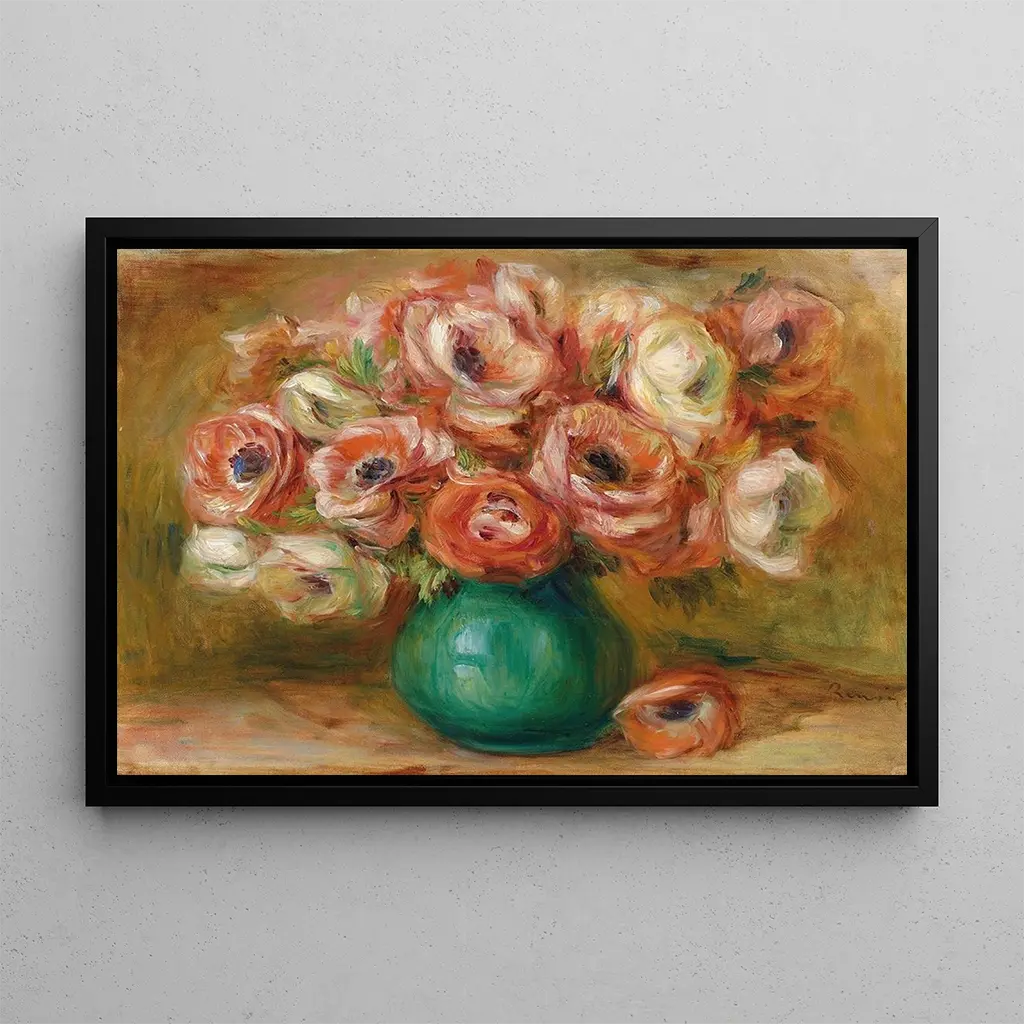 Pierre-Auguste Renoir is one of the most emblematic artists of the Impressionist movement, which emerged in late 19th-century France. Born in 1841, he was influenced by masters such as Monet and Degas, but developed a style that is uniquely his own, characterized by luminous colors and dynamic compositions. His work often focuses on everyday life and the beauty of nature, as exemplified by the "Anemone Vase." Renoir captured the essence of his era, and his legacy endures through his paintings, which continue to inspire and delight.
