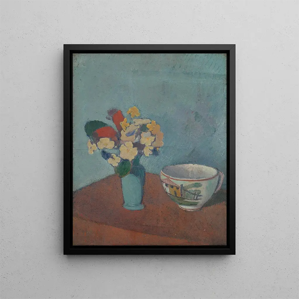 Émile Bernard’s artwork "Vase with Flowers and Cup" presents itself as a delicate invitation to immerse oneself in a universe where nature and art meet with striking harmony. This creation, imbued with the artist’s sensitivity, evokes an intimate atmosphere, where each element finds its place in a subtle visual dialogue. The vibrant colors and delicate shapes combine to offer an aesthetic experience that transcends mere observation. By contemplating this piece, the viewer is invited to explore the nuances of everyday life, thus revealing the hidden beauty within ordinary objects. **Style and uniqueness of the artwork** Émile Bernard’s style is distinguished by his ability to fuse various influences, ranging from Post-Impressionism to decorative arts. In "Vase with Flowers and Cup," the artist employs a rich and bold color palette, creating a play of light and shadow that brings the composition to life. The flowers, delicately arranged, seem to bloom within the vase, while the cup, in the background, adds a touch of everyday life to the scene. This contrast between the ephemeral nature of the flowers and the utilitarian object of the cup invites reflection on the fleeting beauty of life. Bernard’s technique, both precise and fluid, demonstrates his skill in capturing the essence of things, while revealing a certain poetry. **The artist and his influence** Émile Bernard, a prominent figure of the Post-Impressionist movement, made his mark through an innovative approach to painting. Raised in a rich artistic environment, he associated with masters such as Paul Gauguin and Vincent van Gogh, whose influences are evident in his works. Bernard always sought to transcend conventions, exploring diverse themes and techniques. His interest in color and form led him to develop a distinctive style characterized by a quest for simplicity and harmony. "Vase with Flowers and Cup" perfectly illustrates this pursuit, where each element is carefully chosen to contribute to the whole, reflecting Bernard’s lasting impact on the artistic landscape. An exceptional wall decoration signed
