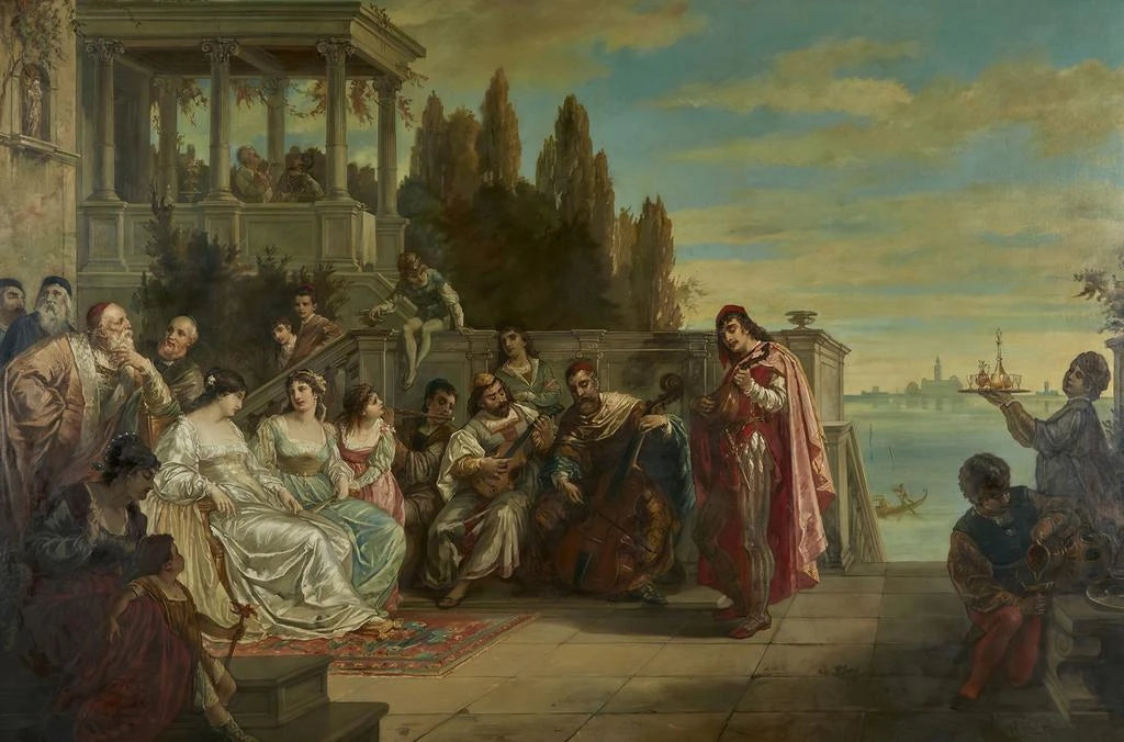 Augusto Wolf, a 19th-century painter, is known for his depictions of Venetian life, blending realism and romanticism. His work is set in a period when the artist seeks to capture the essence of local traditions while exploring themes of celebration and conviviality. Influenced by the vibrant colors and lights of Venice, Wolf manages to create paintings that celebrate Italian culture. His work is a tribute to the beauty and richness of traditions, making him an essential artist of his time.