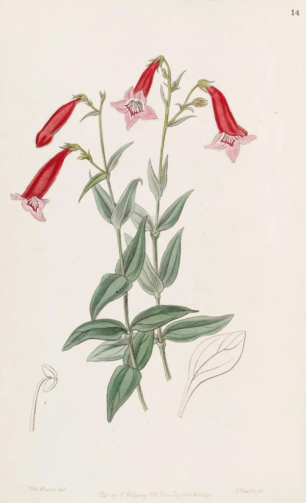 Art print Pentstemon vermillon - Sydenham Edwards