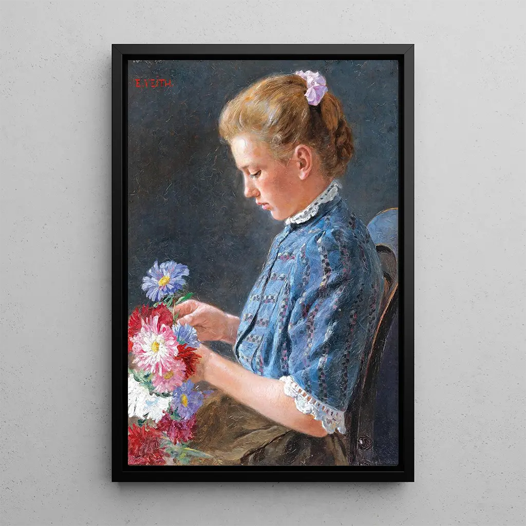 The art print of "Young Viennese Girl at the Naschmarkt" by Eduard Veith evokes a lively and charming scene. This painting depicts a young woman, likely a vendor, in the bustling setting of the Naschmarkt, Vienna's famous market. The vivid colors and meticulous details of the canvas capture not only the beauty of the protagonist but also the vibrancy of urban life. Light plays a crucial role, illuminating the young girl's face and creating a warm, welcoming atmosphere that invites the viewer to immerse themselves in this everyday scene.