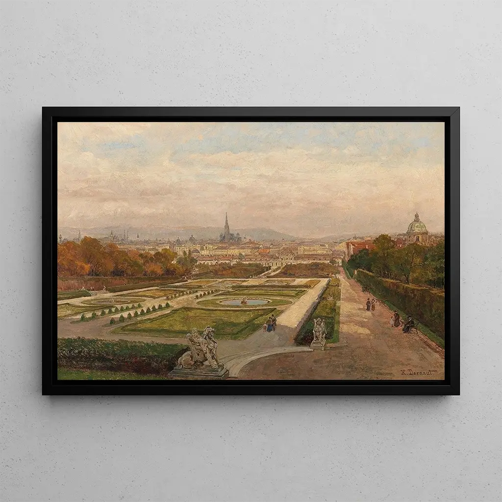 View from the Belvedere over Vienna: an immersion in urban beauty The art print of View from the Belvedere over Vienna offers a captivating perspective on the Austrian capital. This painting, bathed in light, reveals the rooftops and iconic monuments of Vienna, such as the Belvedere Palace and St. Stephen's Cathedral. The vibrant colors, ranging from deep blues to warm ochres, create a dynamic and lively atmosphere. The composition, carefully balanced, invites the viewer to explore every detail of this panoramic view, paying homage to the city's architectural and natural beauty. Hugo Darnaut: an artist at the heart of Viennese urbanism Hugo Darnaut, an Austrian painter active in the early 20th century, is known for his depictions of urban landscapes and scenes of daily life. Operating during a period of architectural transformation in Vienna, he captured the essence of his city with a perspective that is both nostalgic and modern. Influenced by the Impressionist movement, Darnaut developed a style that blends light and color, paying tribute to the urban planning of his time. His works are valuable testimonies of Vienna's evolution, reflecting both its history and its dynamism. A decorative piece with multiple assets The art print of View from the Belvedere over Vienna is a perfect decorative choice to enhance your interior, whether in a living room, office, or waiting area. Its print quality and attention to detail make it a captivating art piece that draws the eye. This painting adds a touch of elegance and sophistication while evoking Vienna's rich cultural heritage. With its aesthetic appeal, this canvas becomes a central element of your decor, sparking curiosity and admiration among your visitors.