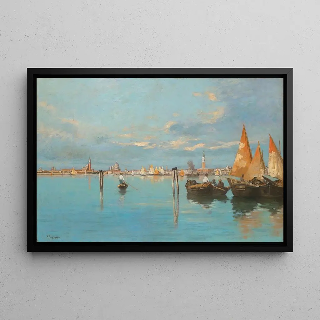 Venice View: A Symphony of Light and Water The art print of "Venice View" by Pietro Fragiacomo transports us to the heart of the Serenissima, where the shimmering reflections of the water dance with the golden sunlight. The shades of blue and green blend harmoniously, creating an atmosphere that is both peaceful and vibrant. The oil on canvas technique allows the artist to capture the architectural details of Venetian buildings while infusing a sense of movement through the gondolas gliding on the Grand Canal. This piece evokes an invitation to contemplation, where the viewer can almost hear the whisper of the waters and the singing of the gondoliers. Pietro Fragiacomo: a master of Venetian landscape Pietro Fragiacomo, active in the late 19th century, is renowned for his luminous landscapes and scenes of daily life in Venice. Influenced by the Impressionist movement, he mastered blending detailed precision with a palette of vibrant colors, capturing the very essence of Venetian light. Fragiacomo spent much of his life in Venice, which allowed him to develop an intimate understanding of this unique city. His work, although less known than that of some of his contemporaries, has left an indelible mark on art history, bearing witness to the timeless beauty of Venice. A decorative acquisition with multiple assets The art print of "Venice View" makes an ideal decorative piece for various spaces, whether in a living room, office, or bedroom. Its print quality and fidelity to the original work make it an attractive choice for those wishing to add a touch of elegance to their interior. With its soothing colors and serene atmosphere, this canvas invites dreaming and escapism. By adding this art print to your collection, you give your space a warm and welcoming ambiance, while celebrating the art and beauty of Venice.