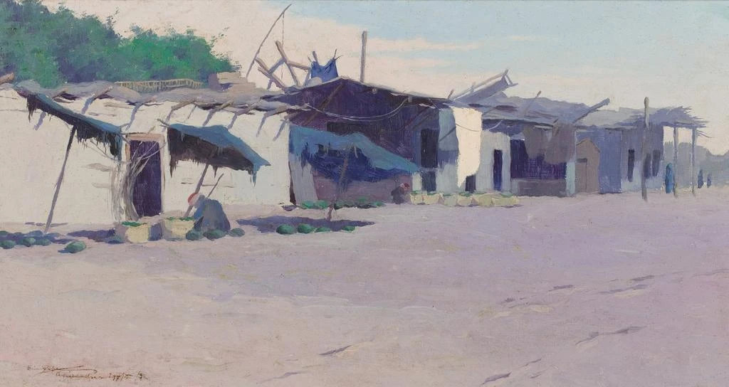 Eric Pape, an American painter of the early 20th century, is known for his landscapes and genre scenes. Influenced by the Impressionist movement, he captured the light and atmosphere of his subjects with great sensitivity. Pape traveled around the world, immersing himself in the cultures he encountered, which enriched his work. His time in Egypt, where he created "Village Huts in Alexandria," reflects his interest in exotic landscapes and traditional ways of life. Through his art, he offers us a valuable glimpse of the era and the places he explored.