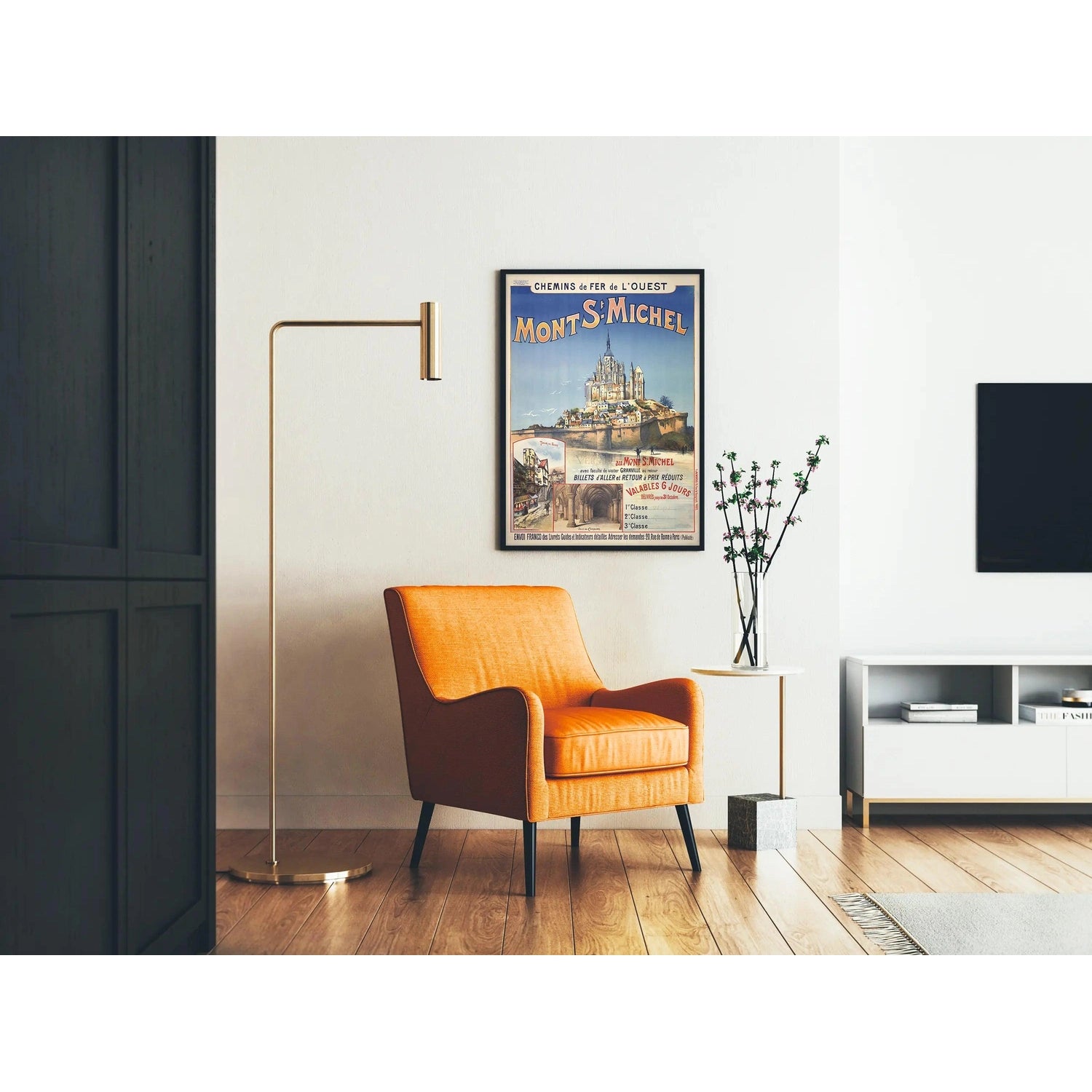 This vintage Mont-Saint-Michel poster reflects the golden age of railway posters. Thanks to its detailed illustration, bold colors, and informative composition, it evokes both the prestige of the destination and the modernity of the transportation means of the time.