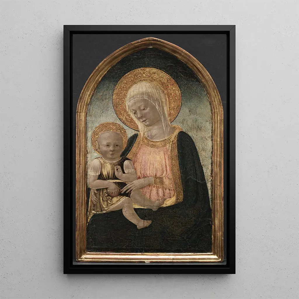 La art print de la Vierge à l'Enfant de Neri di Bicci évoque une douce intimité entre la mère et son enfant. Les couleurs chaudes et dorées, typiques de la Renaissance italienne, enveloppent la scène d'une atmosphère sereine et apaisante. La technique de la tempera sur bois confère à l'œuvre une texture riche, accentuant les détails délicats des visages et des drapés. Chaque coup de pinceau semble respirer la dévotion, invitant le spectateur à contempler ce moment sacré, où la maternité et la spiritualité se rencontrent.