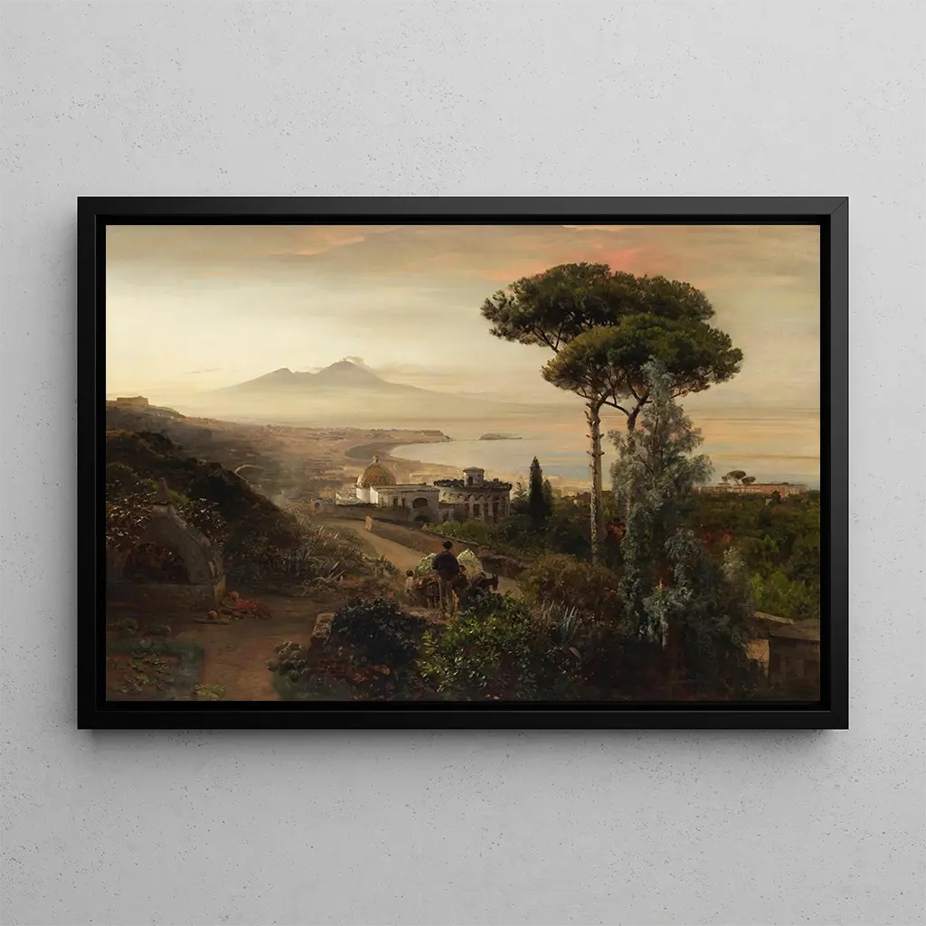 View of Vesuvius: a window into natural beauty The art print of the view of Vesuvius offers us a captivating glimpse of a majestic landscape, where the power of nature blends with the tranquility of the surrounding waters. The vibrant shades of blue and green, combined with touches of golden light, create a serene and soothing atmosphere. The artist skillfully captured the magnificence of the volcano while incorporating elements of daily life, such as boats on the sea, which add a human dimension to this artwork. This piece invites contemplation and escape, transporting the viewer to enchanting shores. Oswald Achenbach: Romanticism at its peak Oswald Achenbach, a German painter of the 19th century, is renowned for his romantic landscapes that celebrate the beauty of nature. Influenced by the Romantic movement, Achenbach combined refined technique with poetic sensitivity. His career was marked by travels across Europe, allowing him to explore and depict diverse landscapes, including Vesuvius. His work had a significant impact on landscape art, and he is considered one of the masters of his era, bringing a new dimension to the representation of nature. A decorative acquisition with multiple assets Choosing an art print of the view of Vesuvius is to enrich your living space with a piece of art that evokes the beauty and grandeur of nature. Perfect for a living room, an office, or even a bedroom, this canvas adds a touch of serenity and elegance to your decor. The quality of the reproduction ensures remarkable fidelity to the details and colors, allowing you to fully appreciate the original work. With its timeless charm, this art print becomes an essential decorative element, bringing a calming atmosphere to your interior.