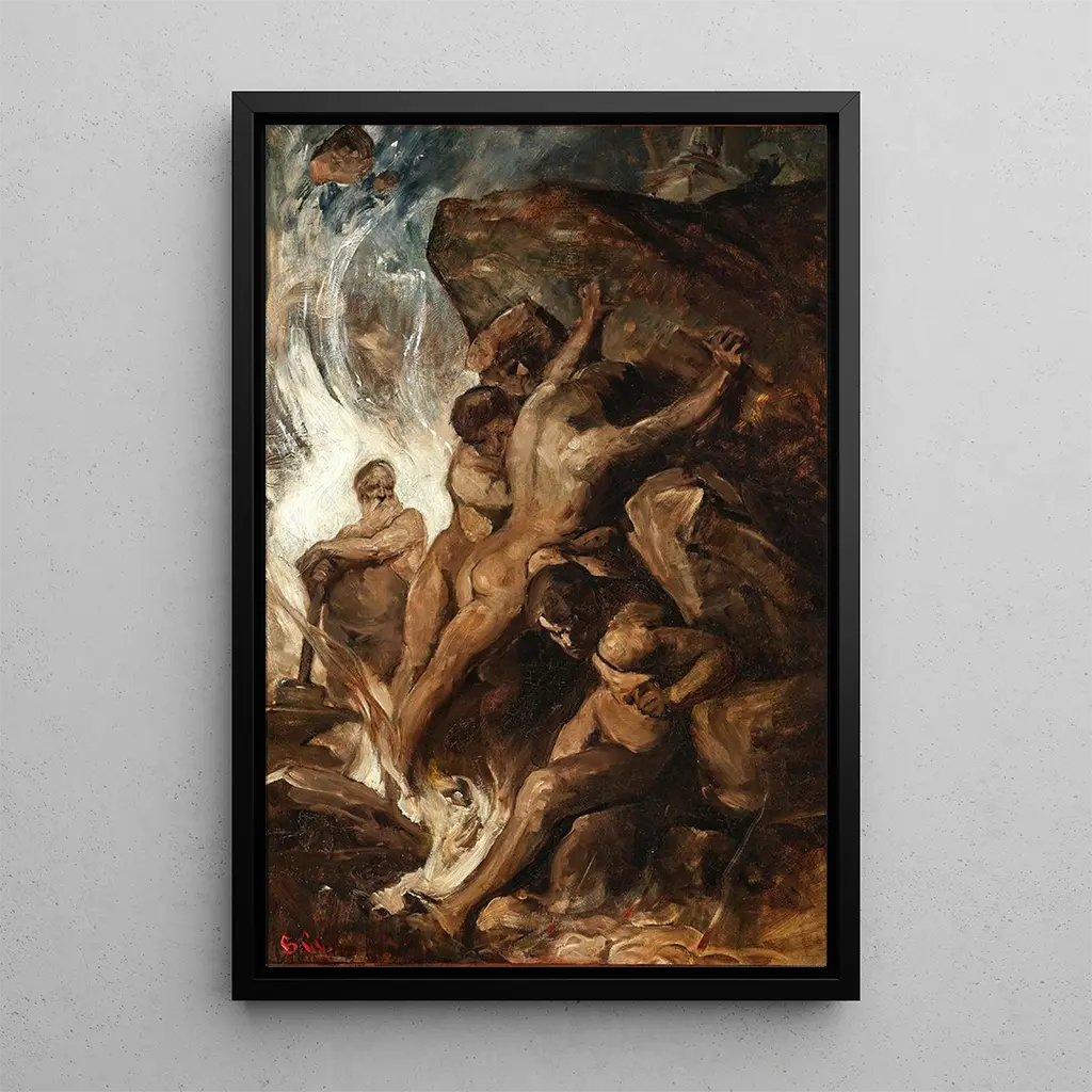 Gyula von Benczúr, a Hungarian painter of the 19th century, is renowned for his historical and mythological art prints that blend realism and romanticism. Trained at the Vienna Academy of Fine Arts, he was influenced by the great masters of European painting, while incorporating elements of Hungarian culture. His work is often associated with the rise of artistic nationalism in Hungary, seeking to redefine national identity through art prints. "Vulcan in his forge" is an emblematic example of his style, skillfully combining history and mythology to create captivating visual narratives.