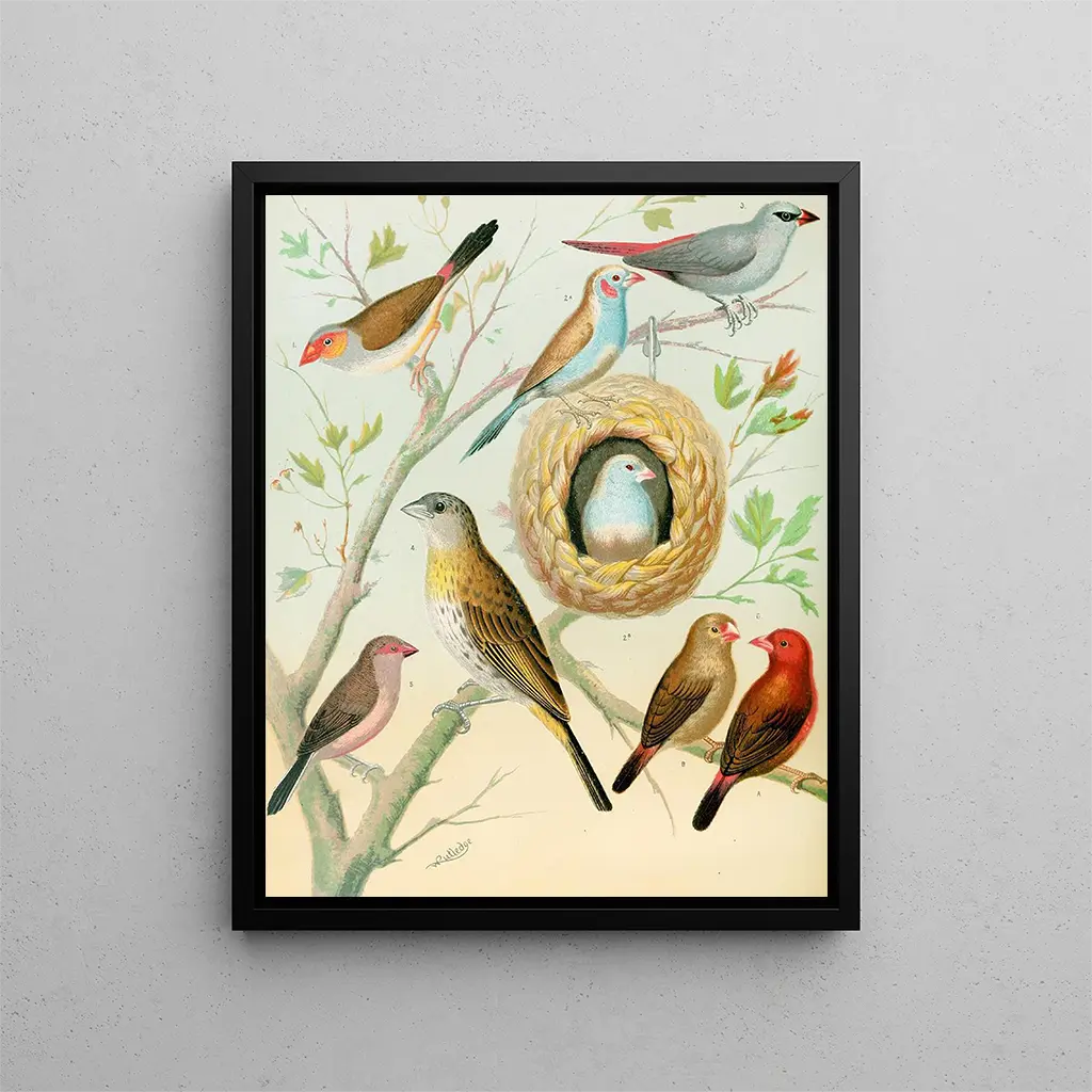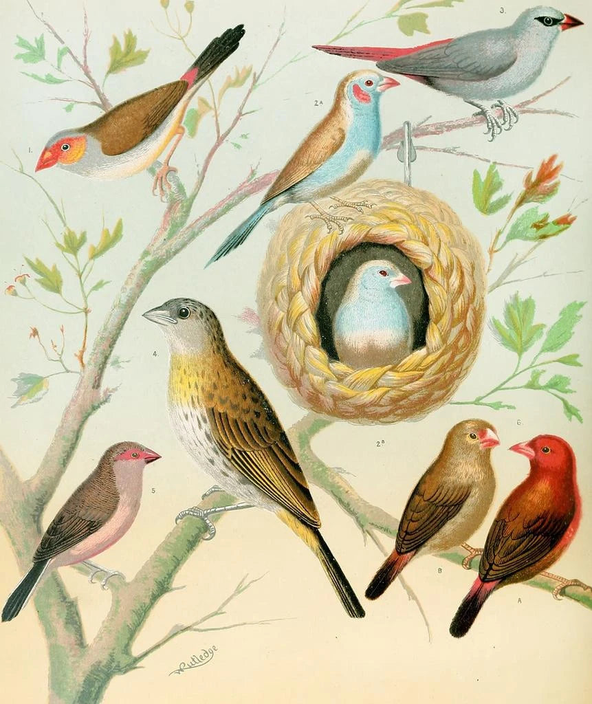 Art print Waxbills, saffron finch and fire finch - W. A. Blakston