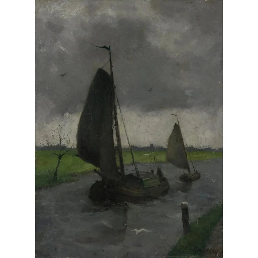 Art print | Waterway with sailing barges - Eduard Karsen