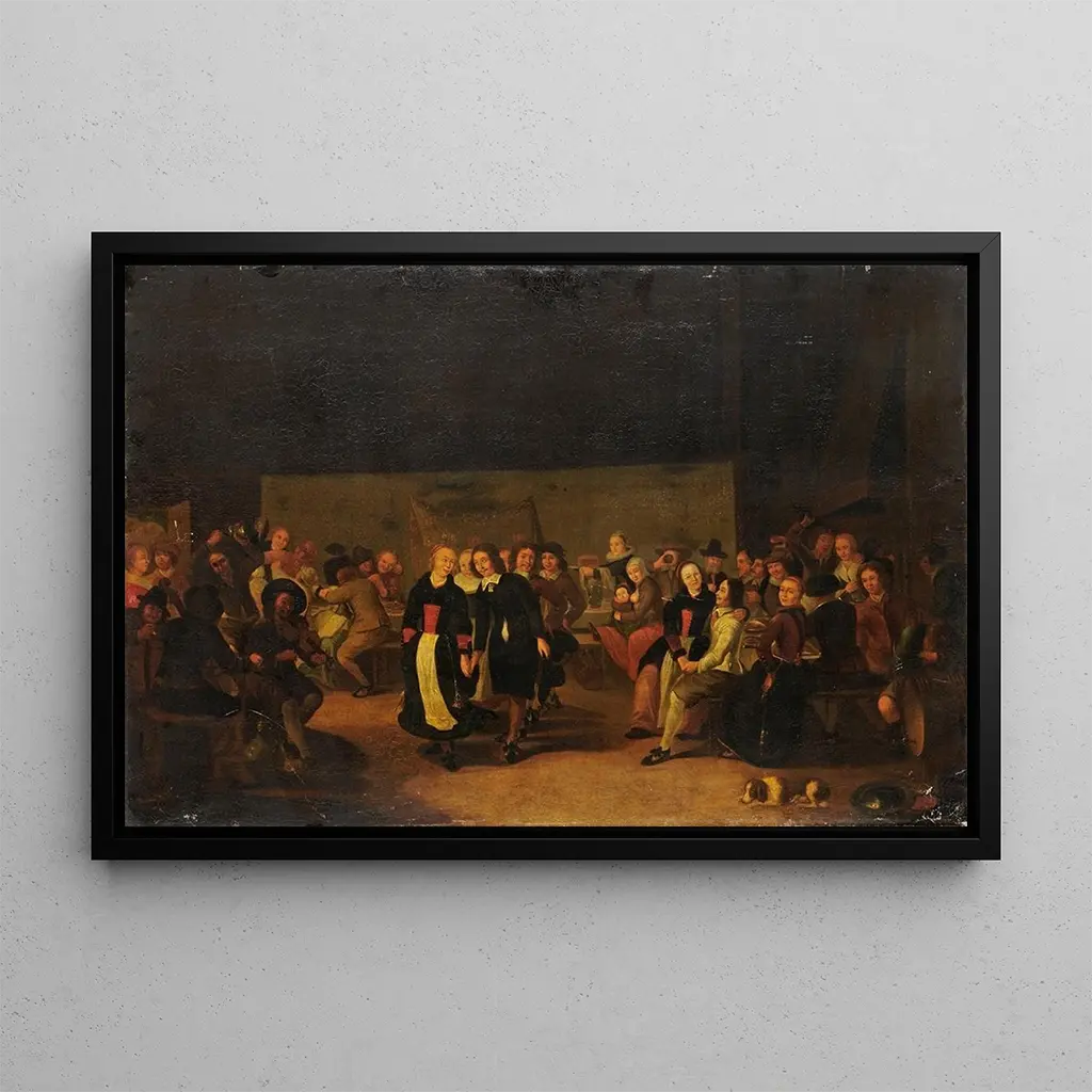 Festin de mariage : une célébration de la vie et des traditions Le tableau Festin de mariage de Gerrit Lundens dépeint une scène vibrante et festive, où les convives se rassemblent autour d'une table richement garnie. Les couleurs chatoyantes et les détails minutieux des costumes et des mets créent une atmosphère de joie et de convivialité. Lundens, avec son habileté à capturer les expressions humaines et les interactions sociales, nous plonge dans l'intimité de ce moment de célébration. Chaque personnage semble raconter une histoire, témoignant de l'importance des traditions et des liens familiaux dans la culture de l'époque. Gerrit Lundens : un témoin des mœurs du XVIIe siècle Gerrit Lundens, actif au XVIIe siècle, est un peintre néerlandais dont le travail illustre parfaitement les mœurs et les coutumes de son temps. Élevé dans un contexte artistique riche, il s'inspire des maîtres flamands tout en développant son propre style. Ses œuvres, souvent centrées sur des scènes de la vie quotidienne, révèlent une attention particulière aux détails et une compréhension profonde des interactions humaines. Lundens est reconnu pour sa capacité à immortaliser des moments de vie, faisant de lui un artiste essentiel pour comprendre la société de son époque. Une acquisition décorative aux multiples atouts La reproduction de Festin de mariage est un choix décoratif qui apportera une touche d'authenticité et de chaleur à votre intérieur. Que ce soit dans une salle à manger, un salon ou un espace de réception, ce tableau invite à la convivialité et à la célébration. Sa qualité de reproduction assure une fidélité impressionnante aux couleurs et aux détails de l'œuvre originale, tout en offrant un attrait visuel captivant. En intégrant cette toile dans votre décoration, vous créez un espace qui célèbre la vie et les traditions, tout en ajoutant une dimension artistique à votre environnement.