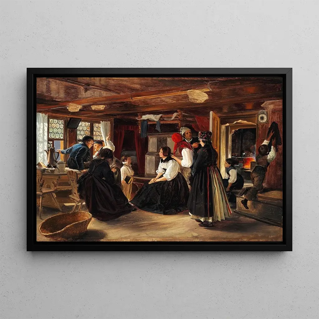 The art print of Wedding Preparations by Hermann Sondermann delicately illustrates the intimacy of a pivotal moment. This canvas, bathed in soft colors and warm lights, depicts a scene of preparation where emotion and anticipation intertwine. The characters, carefully arranged, seem captured in a silent dance, each absorbed in their thoughts and gestures. Sondermann's technique, blending realism with impressionist touches, creates an atmosphere that is both festive and contemplative, inviting the viewer to feel the magic of love and commitment.