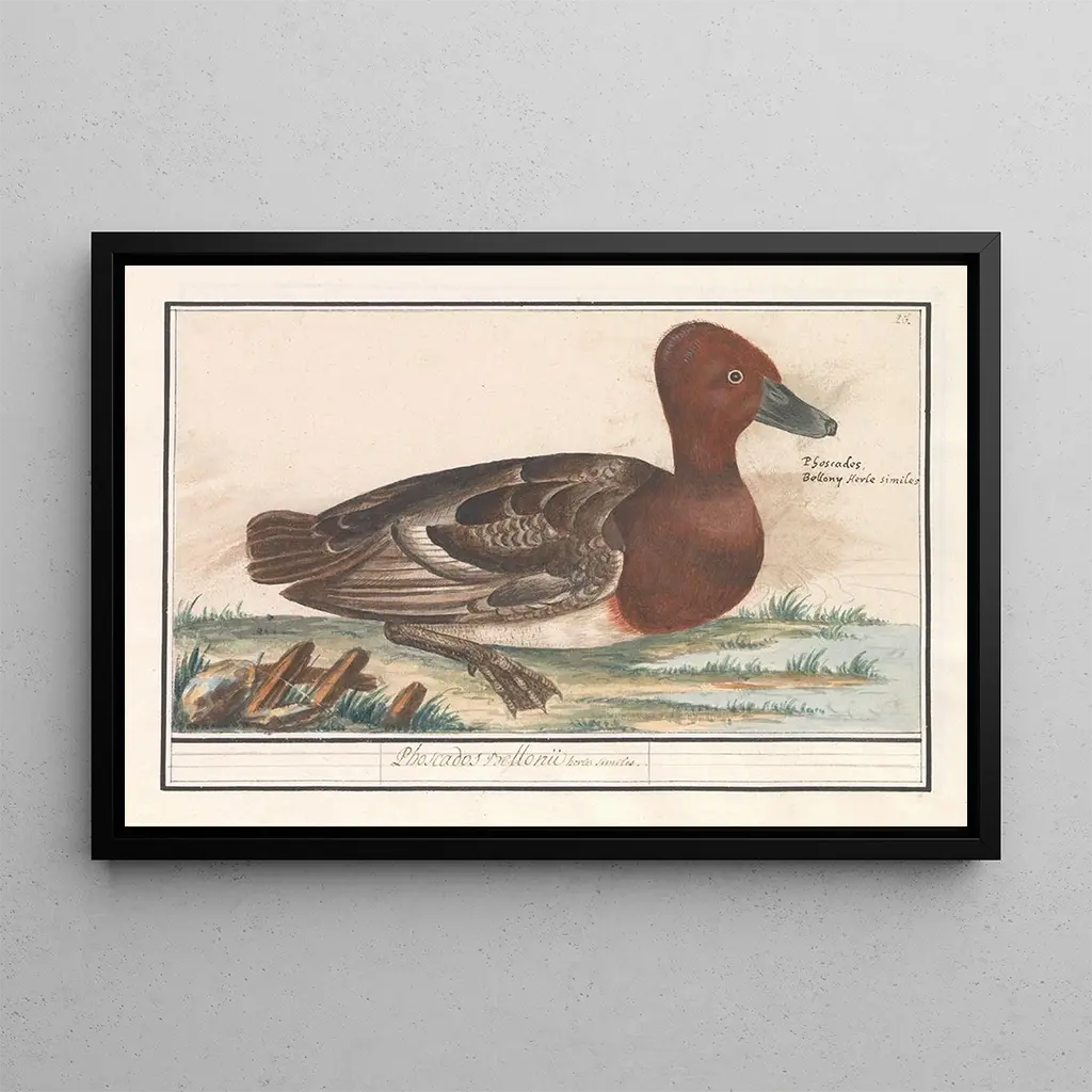The art print of "Singing Duck (Anas penelope)" by Anselmus Botius de Boodt is a tribute to the beauty of nature. This 17th-century piece highlights a singing duck, with meticulous details and delicate colors capturing the essence of this aquatic bird. The color palette, dominated by shades of green, blue, and brown, evokes the natural habitats where this species lives. The artist's technique, blending realism and finesse, allows viewers to feel the lightness of the plumage and the grace of the duck in its environment. This canvas invites contemplation of wildlife and flora, while celebrating the tranquility of aquatic landscapes. Anselmus Botius de Boodt: a pioneer of bird painting Anselmus Botius de Boodt, a Flemish painter and naturalist, is recognized for his contributions to bird art in the 17th century. Trained in painting, he combined his love for nature with his artistic talent, creating works that document the biodiversity of his time. His scientific and aesthetic approach influenced many artists and naturalists, making him a key figure in the study of birds. The "Singing Duck" is a perfect example of his skill in capturing the beauty of birds while maintaining a realistic representation. His work remains a reference for art and nature enthusiasts. A decorative acquisition with multiple benefits The art print of "Singing Duck (Anas penelope)" is a decorative piece that will bring a touch of serenity and elegance to your interior. Whether in an office, living room, or bedroom, this canvas evokes the beauty of nature and invites relaxation. Its reproduction quality ensures fidelity to the details and colors of the original work, allowing you to fully enjoy its aesthetic appeal. By incorporating this piece into your decor, you choose not only a decorative element but also a source of inspiration and peace, enriching your living space.