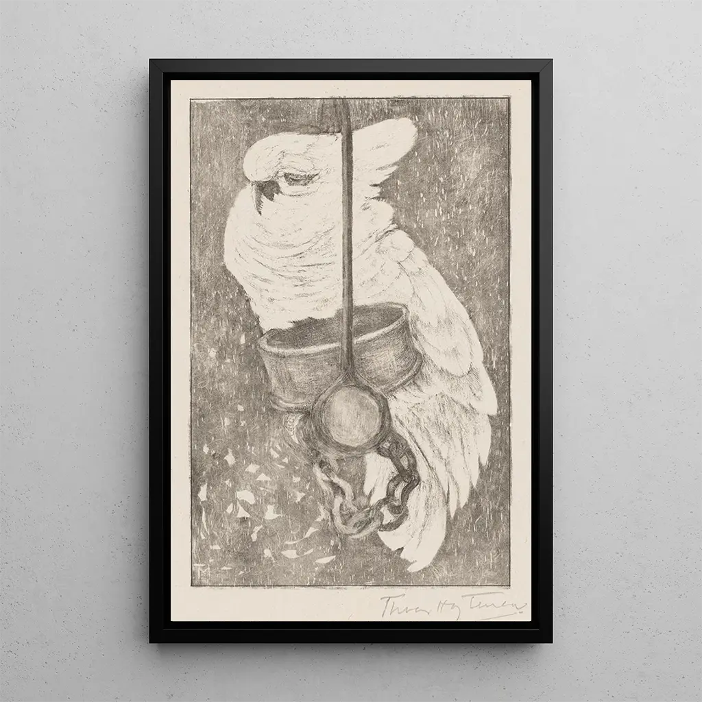 Cacatoès blanc : a celebration of avian exotism The art print of the white cockatoo by Theo van Hoytema is a true ode to the beauty of exotic birds. With its dazzling plumage and lively gaze, this bird is depicted with remarkable finesse. The vibrant colors and precise details of the feathers create a lively, almost living atmosphere. The composition, centered on the bird, immediately draws the eye and invites admiration. The artwork evokes a sense of freedom and wonder, transporting the viewer to a world where nature reigns supreme. Theo van Hoytema : the artist at the heart of nature Theo van Hoytema, Dutch illustrator and painter, captured the essence of wildlife through his works. Active in the late 19th century, he was influenced by the Art Nouveau movement, which promoted harmony between art and nature. His work is distinguished by meticulous attention to detail and a naturalistic approach that earned him recognition in the illustration world. Focusing on animal subjects, van Hoytema helped raise awareness of the beauty and fragility of nature, leaving a lasting legacy in the artistic field. A decorative acquisition with multiple assets The art print of the white cockatoo is a decorative addition that will enrich your living space. Whether in a living room, office, or bedroom, this canvas adds a touch of exotism and color. Its printing quality guarantees fidelity to the vibrant nuances of the original artwork, offering undeniable aesthetic appeal. By choosing this art print, you invest in a piece that not only enhances your interior but also evokes a deep respect for nature and its wonders.