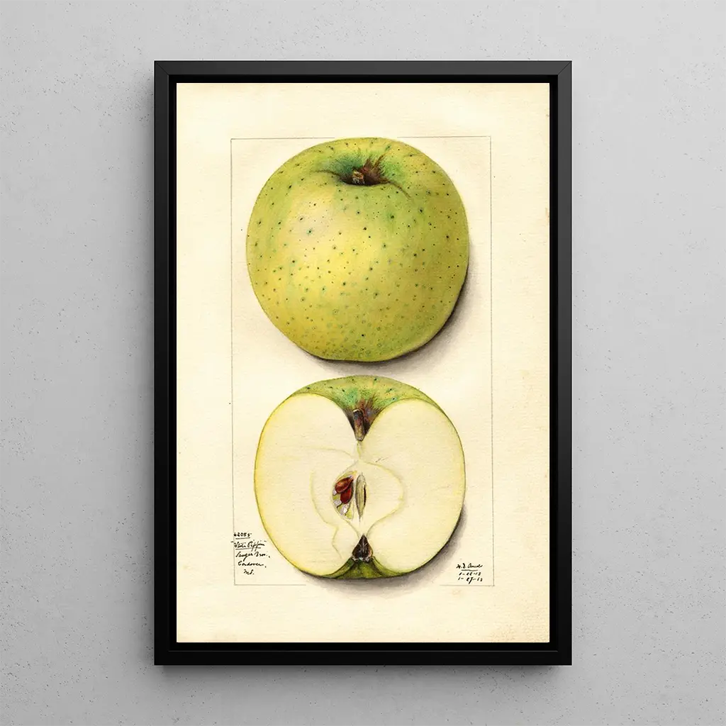 The art print of the painting Malus domestica White Pippin is an ideal choice to enhance your interior. Whether in a living room, office, or bedroom, this canvas adds a touch of freshness and serenity. The quality of the print guarantees fidelity to the colors and details of the original work, allowing you to enjoy its aesthetic appeal daily. By integrating this art print into your decor, you invite the beauty of nature into your living space, while paying tribute to a talented artist. This piece is not only a decorative element but also a source of inspiration and contemplation.