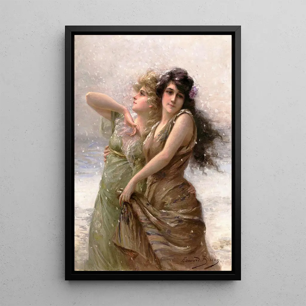 "L'Hiver" by Édouard Bisson evokes a peaceful atmosphere, where snow delicately covers the landscape. The dominant white and silver tones create a striking contrast with the touches of blue in the sky. Bisson's technique, blending realism and impressionism, brings this winter scene to life. The characters, wrapped in warm clothing, seem to blend into this fairy-tale setting, inviting the viewer to feel the crispness of the air and the tranquility of the moment. Every detail, from snowflakes to tree branches, is carefully rendered, offering a total immersion in this enchanting winter scene. Édouard Bisson: a master of French romanticism Édouard Bisson, active at the end of the 19th century, is recognized for his romantic style and depictions of nature. Influenced by the great masters of his time, he follows a tradition where the beauty of the landscape is highlighted. His works, often imbued with melancholy and poetry, capture moments of everyday life while celebrating the splendor of the seasons. "L'Hiver" fits into this lineage, reflecting his skill in marrying realism with a touch of idealization. The artist, although less known than some of his contemporaries, leaves behind a rich legacy, testifying to the beauty of French landscapes. A decorative acquisition with multiple assets The art print of "L'Hiver" is an ideal decorative piece to bring a touch of serenity to your interior. Whether in a living room, office, or bedroom, this canvas will appeal through its quality and fidelity to the original work. Its aesthetic appeal, blending softness and elegance, makes it a perfect choice for those wishing to enrich their decoration. By integrating this artwork into your space, you invite not only the beauty of winter but also a soothing atmosphere, conducive to contemplation and daydreaming.