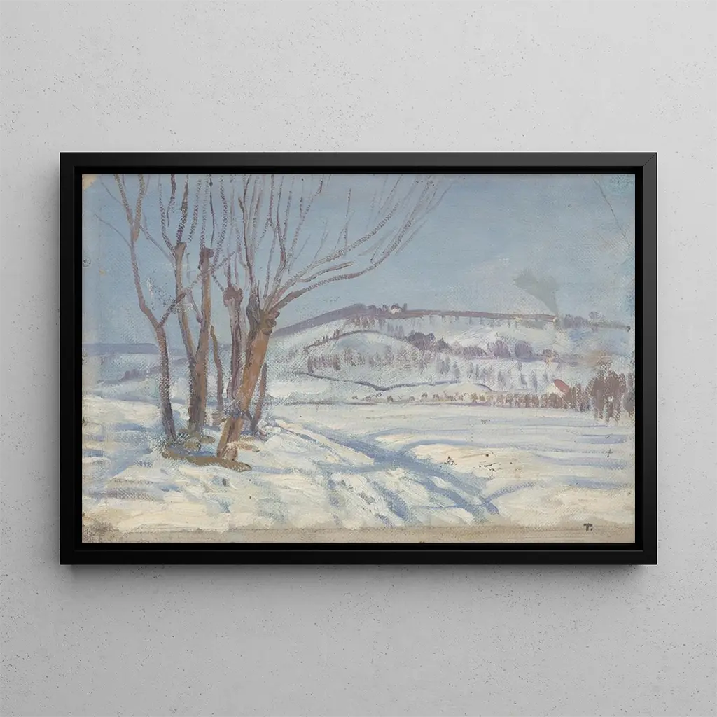 Winter Landscape: A Winter Serenity The "Winter Landscape" art print by John Thain depicts a peaceful and enchanting scene, where snow delicately covers the landscape. The soft shades of white and blue blend to create a calm and serene atmosphere, inviting contemplation. The oil on canvas technique allows Thain to capture the winter light, bringing to life each snowflake and shadow cast. This art print evokes the quiet beauty of winter, a moment suspended in time where nature seems to rest under its white mantle. John Thain: a Romantic Landscape Artist John Thain, active in the 19th century, is known for his poetic representations of British landscapes, often imbued with romantic sensitivity. His style, influenced by the Romantic movement, is characterized by a particular attention to light effects and the depiction of nature in all its splendor. Thain was able to capture the essence of the seasons, and "Winter Landscape" is a perfect example, illustrating the ephemeral beauty of winter. His work reflects an era when nature was seen as a source of inspiration and reflection, a theme still relevant in contemporary art. A decorative acquisition with multiple advantages The art print of "Winter Landscape" is a perfect choice to bring a touch of freshness and tranquility to your interior decor. Whether in a living room, office, or bedroom, this canvas will create a soothing and welcoming atmosphere. Its printing quality guarantees exceptional fidelity to the delicate nuances of the original work, while offering undeniable aesthetic appeal. By choosing this art print, you add a timeless piece of art that evokes the serene beauty of winter, enriching your living space with a touch of visual poetry.