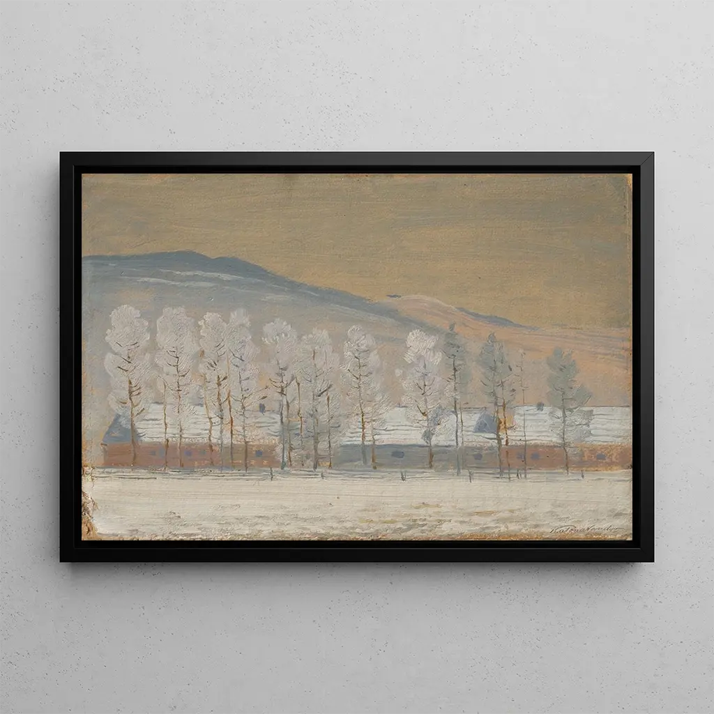 The art print of "Paysage d'hiver près de Diar" is an ideal decorative piece to bring a touch of serenity to your interior. Whether in a living room, office, or bedroom, this art print invites dreaming and contemplation. Its reproduction quality guarantees remarkable fidelity to the original details, allowing you to fully enjoy the aesthetic appeal of the work. With its delicate nuances and soothing atmosphere, this canvas will enhance your decor while creating a warm and welcoming ambiance.