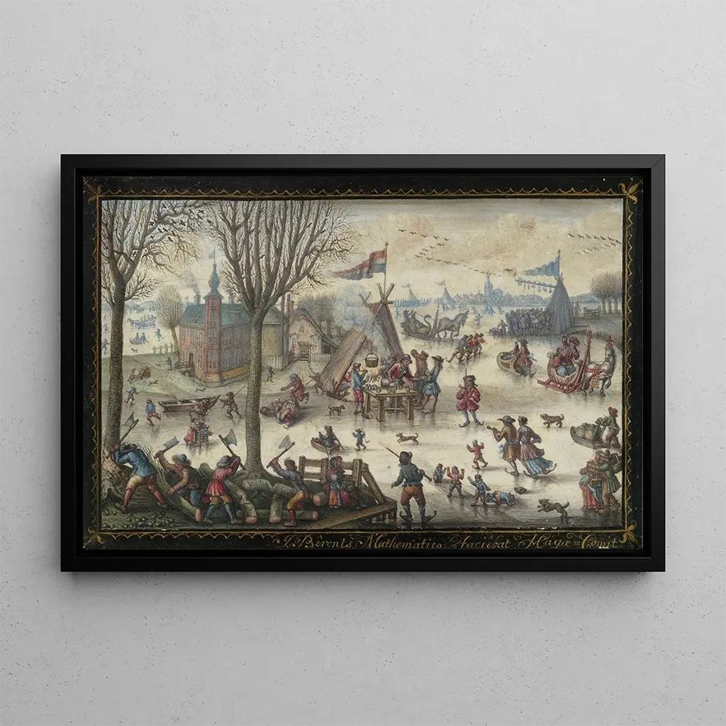Winter landscape with figures: a scene imbued with serenity In this art print of the painting "Winter landscape with figures," Jan Berents transports us into a wintery universe where tranquility prevails. The soft shades of blue and white blend harmoniously, creating a peaceful atmosphere. The figures, dressed in warm coats, move gracefully through this snowy landscape, while the bare trees add a touch of melancholy. Berents' technique, characterized by delicate brushstrokes, allows you to feel the crispness of the air and the silence of the snow. Every detail, from the snowflakes to the shadows of the figures, contributes to the impression of a lively and timeless scene. Jan Berents: a master of Dutch landscape art Jan Berents, active in the 17th century, is renowned for his winter landscapes that capture the ephemeral beauty of nature. Influenced by the masters of his time, he developed a unique style that combines realism and poetry. His works are often imbued with a nostalgic atmosphere, reflecting his era marked by social and economic changes. Berents succeeded in immortalizing scenes of everyday life while incorporating natural elements that testify to his love for the outdoors. His contribution to Dutch art is undeniable, and his art prints continue to inspire art enthusiasts. A decorative acquisition with multiple virtues Choosing an art print of "Winter landscape with figures" by Jan Berents means selecting a piece that will bring a touch of serenity to your interior. Whether in a living room, office, or bedroom, this canvas will harmoniously integrate into your decor. Its printing quality guarantees fidelity to the colors and details of the original work, while offering undeniable aesthetic appeal. This painting invites contemplation and daydreaming, making each glance a moment of escape. By adding this art print to your collection, you enrich your space with a work of art that evokes the beauty of winter landscapes.