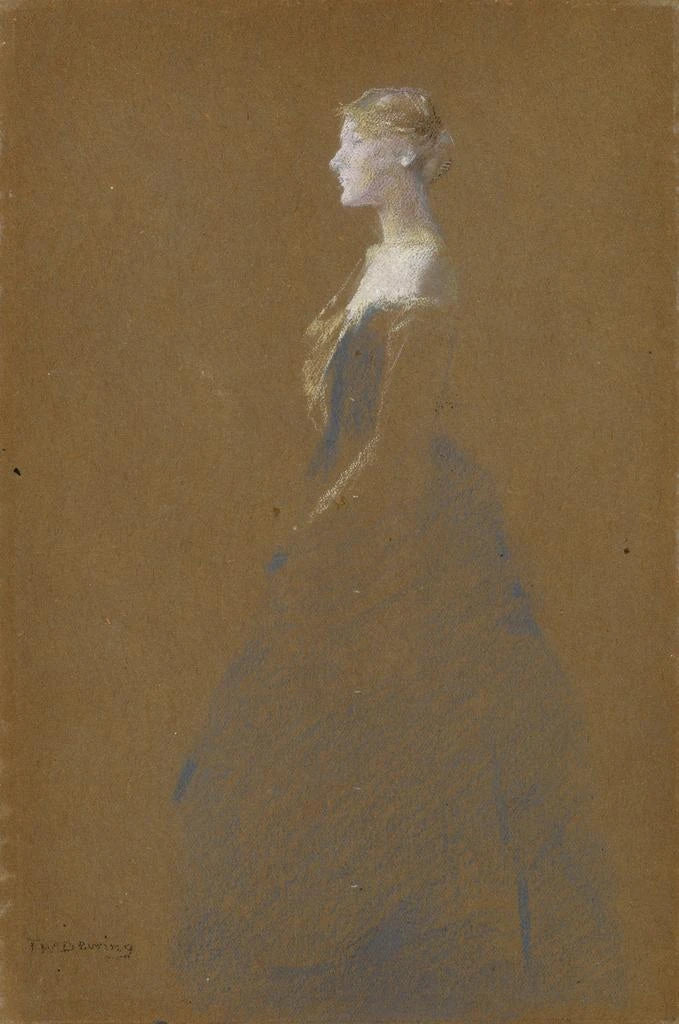 Thomas Dewing, active at the end of the 19th and beginning of the 20th century, is often associated with the American impressionist movement. His career is marked by an exploration of themes of femininity and nature, influenced by his contemporaries and European artistic currents. Dewing developed a unique style, combining modern sensitivity with traditional techniques. "Femme en robe bleue" perfectly embodies this quest for harmony between man and nature, while highlighting the timeless beauty of his female models, often depicted in contemplative poses.
