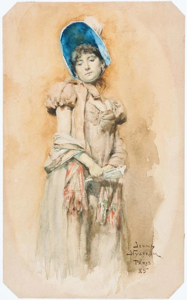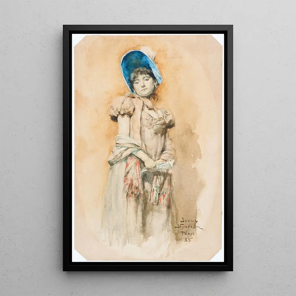 Jenny Nyström, artiste suédoise du XIXe siècle, est reconnue pour son style unique qui mêle romantisme et influences folkloriques. Née en 1854, elle a su capturer la beauté des scènes de la vie quotidienne tout en intégrant des éléments de la culture nordique. Nyström a été influencée par les traditions artistiques de son époque, mais elle a également su se démarquer par sa sensibilité et son approche poétique. Ses œuvres, souvent empreintes de nostalgie, témoignent d'une époque où l'art était un moyen d'évasion et de célébration des valeurs traditionnelles. "Femme en capote" s'inscrit parfaitement dans cette lignée, reflétant l'importance de la femme dans la société de son temps.