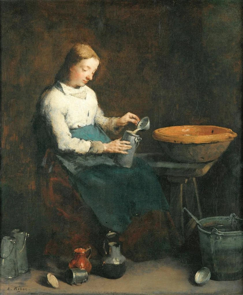 Woman pouring milk - Théodule Ribot Source: Femme versant du lait - Théodule Ribot