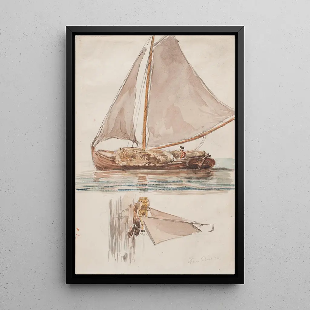 Bateau chargé de bois Rospigg : an art print depicting a maritime scene filled with serenity