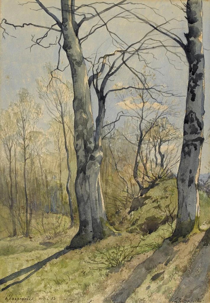 Henri-Joseph Harpignies, peintre du XIXe siècle, est souvent associé au mouvement impressionniste, bien qu'il ait développé un style qui lui est propre. Sa passion pour la nature et son talent pour capturer les variations de lumière font de lui un artiste incontournable de son époque. Harpignies a été influencé par des maîtres tels que Corot et Millet, et ses œuvres reflètent une profonde admiration pour le paysage français. Son travail a été largement exposé, et il a joué un rôle clé dans l'évolution de la peinture de paysage en France, inspirant ainsi de nombreuses générations d'artistes.