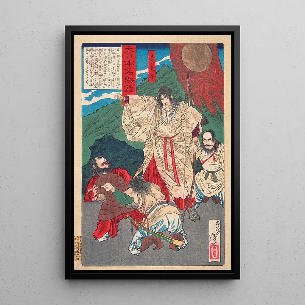 Yamato Takeru no Mikoto with bow: a legendary hero in full action In this captivating art print, Yamato Takeru no Mikoto is depicted in all his splendor, wielding his bow with palpable determination. The vibrant colors and meticulous details of his armor evoke an atmosphere of bravery and mystery. The dynamic composition draws the eye, highlighting the character's movement as if he were about to launch into an epic adventure. Tsukioka Yoshitoshi, master of Japanese ukiyo-e prints, manages to capture the essence of this mythological hero, transforming a scene of combat into a vibrant and evocative work of art. Tsukioka Yoshitoshi: a pioneer of modern ukiyo-e Tsukioka Yoshitoshi, born in 1839, is one of the last great masters of ukiyo-e, a style of Japanese art print that flourished during the Edo period. Influenced by the social and political upheavals of his time, Yoshitoshi knew how to combine tradition and innovation, creating works that reflect both the beauty and tragedy of life. His work is characterized by a particular attention to detail and bold use of colors, which allowed him to stand out among his contemporaries. The depiction of Yamato Takeru no Mikoto fits into a context where ancient legends are rediscovered and celebrated, demonstrating the importance of mythology in Japanese culture. A decorative acquisition with multiple assets Choosing an art print of Yamato Takeru no Mikoto with bow means selecting a piece that adds a touch of elegance and culture to your interior. Whether in a living room, office, or bedroom, this canvas attracts the eye and sparks curiosity. The quality of the print guarantees fidelity to the original details, allowing you to fully enjoy Yoshitoshi's work. With its undeniable aesthetic appeal, this art print becomes a true focal point, enriching your decoration while telling a fascinating story—the story of a legendary hero from ancient Japan.