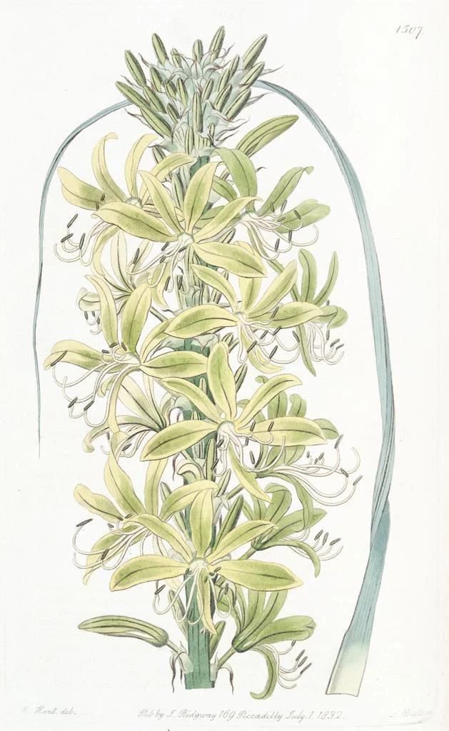 Sydenham Edwards, botanical illustrator of the early 19th century, made his mark with precise and poetic works. His scientific approach, combined with a keen artistic sense, allowed him to create illustrations that are both informative and aesthetic. The Asphodelus luteus of Siberia, like his other works, demonstrates his commitment to faithfully representing nature. Edwards also played a key role in botanical education, making his illustrations accessible to a broad audience and contributing to the popularization of natural sciences.