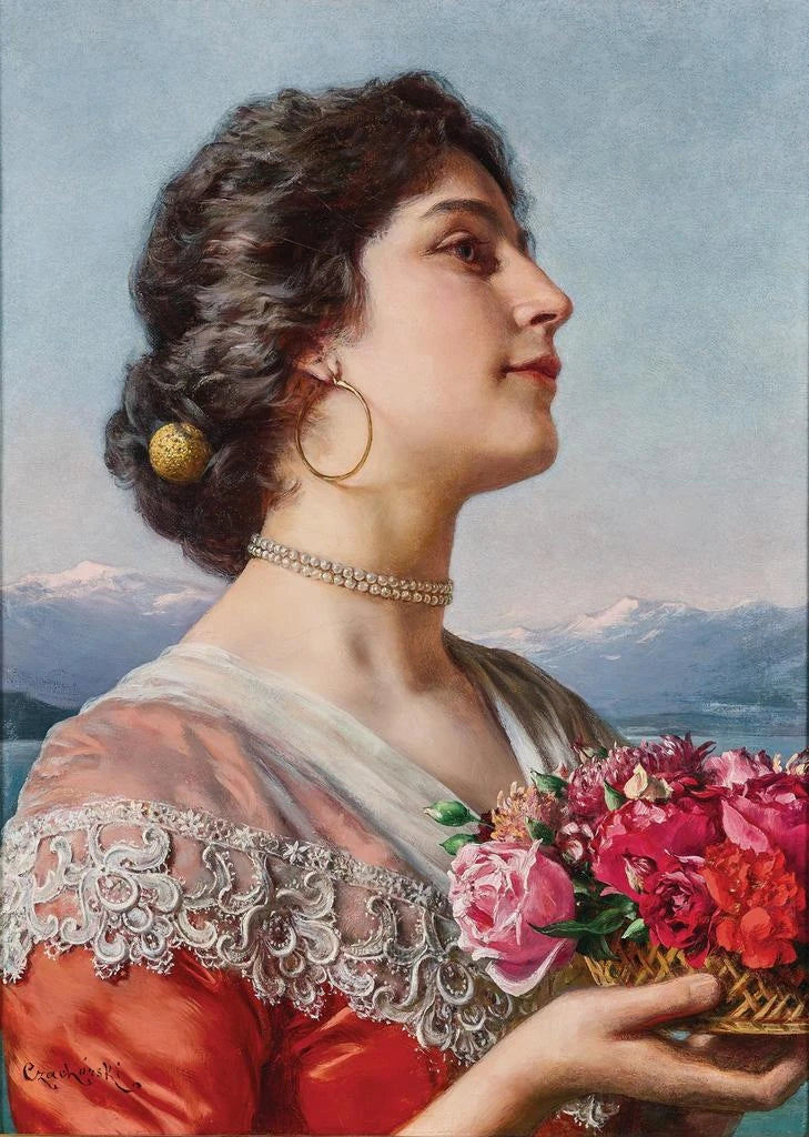 Young Flower Seller: A Portrait of Delicacy The art print of Young Flower Seller by Władysław Czachórski captures the freshness and grace of a young woman amidst a vibrant bouquet. Her gentle expression and sparkling gaze evoke simple joy, while the bright colors of the flowers contrast with the softer tones of her clothing. Czachórski excels in rendering textures, whether it is the delicate skin of the young girl or the richness of the petals. This poetic work invites us to appreciate the ephemeral beauty of life, while highlighting the role of women in the society of his time. Władysław Czachórski: An Artist at the Heart of His Era Władysław Czachórski, active in the 19th century, is a Polish painter whose works reflect the social and aesthetic concerns of his time. Raised in a context where realism and romanticism coexisted, he skillfully drew on these influences to create portraits full of sensitivity. His work often features female figures, symbols of beauty and fragility. Inspired by everyday life and Polish traditions, Czachórski was able to immortalize moments of tenderness and simplicity, making Young Flower Seller an emblematic piece in his repertoire. A Decorative Art Print with Multiple Assets The art print of Young Flower Seller is an ideal decorative choice to bring a touch of freshness and poetry to your interior. Whether in a living room, bedroom, or office, this canvas will captivate attention and evoke emotions. Its printing quality guarantees faithful reproduction of colors and details, allowing you to fully enjoy Czachórski’s work. By integrating this artwork into your decor, you create a welcoming and inspiring space where art and beauty come together to enrich your daily life.