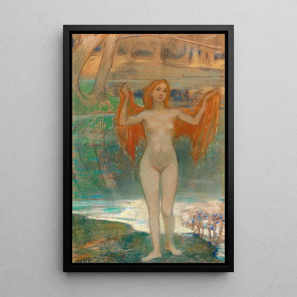 Young Girl by the Lake: a Moment of Grace and Tranquility In "Young Girl by the Lake," Ludwig von Hofmann captures a scene imbued with serenity and beauty. The canvas depicts a young girl, lost in her thoughts, sitting at the edge of a peaceful lake. The pastel colors and water reflections create a dreamy atmosphere, where time seems to stand still. Hofmann's delicate technique, blending Impressionism and symbolism, brings this image to life, evoking a sense of calm and contemplation. The artwork invites an escape to a world where nature and innocence meet. Ludwig von Hofmann: an Artist at the Heart of Symbolism Ludwig von Hofmann, born in 1861, was a German painter who marked his era with his unique style rooted in symbolism. Influenced by the artistic movements of his time, he skillfully integrated elements of mythology and nature into his works. Hofmann also explored themes of childhood and femininity, which is reflected in "Young Girl by the Lake." His work, often characterized by a palette of soft colors and harmonious compositions, demonstrates his desire to capture the essence of beauty and human emotion. A Decorative Acquisition with Multiple Assets The art print of "Young Girl by the Lake" is a decorative choice that will add a touch of elegance and tranquility to your interior. Whether in a living room, bedroom, or office, this piece will appeal through its print quality and fidelity to the original artwork. Its aesthetic appeal and ability to evoke emotions make it an ideal centerpiece for creating a soothing atmosphere. By integrating this canvas into your decor, you offer your space an invitation to daydream and contemplate.