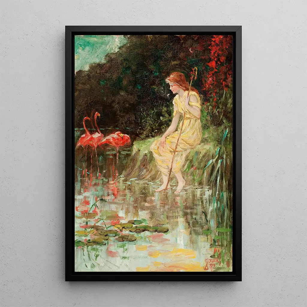 Dans cette toile envoûtante, Frederick Stuart Church dépeint une jeune fille gracieuse entourée de flamants roses, évoquant une atmosphère de sérénité et de beauté. Les nuances douces de rose et de bleu créent un contraste harmonieux, tandis que la lumière joue sur les plumes des oiseaux et les reflets de l'eau. La composition équilibrée, où la figure humaine se mêle à la nature, invite à une contemplation paisible. Cette art print de Jeune Fille avec Flamants Roses est une véritable ode à la beauté féminine et à la splendeur de la faune, transportant le spectateur dans un monde de rêve.